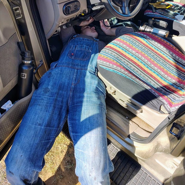 Another surprisingly difficult task was fixing the heater in our folks SUV. It’s the vehicle we use the most out here, and we have all been missing the heater. With the very-cold weather coming this week, our dad picked up the part to fix it. He spent several hours struggling to take the SUV console apart, all to no avail. The hardware to remove it was in a tricky spot. Finally, Grace decided to give it a try, as she is smaller and able to reach under that part of the vehicle more easily. She had the hardware removed in minutes, and our dad was overjoyed. She helped him complete the rest of the repair, reaching tight spots whenever he couldn’t.