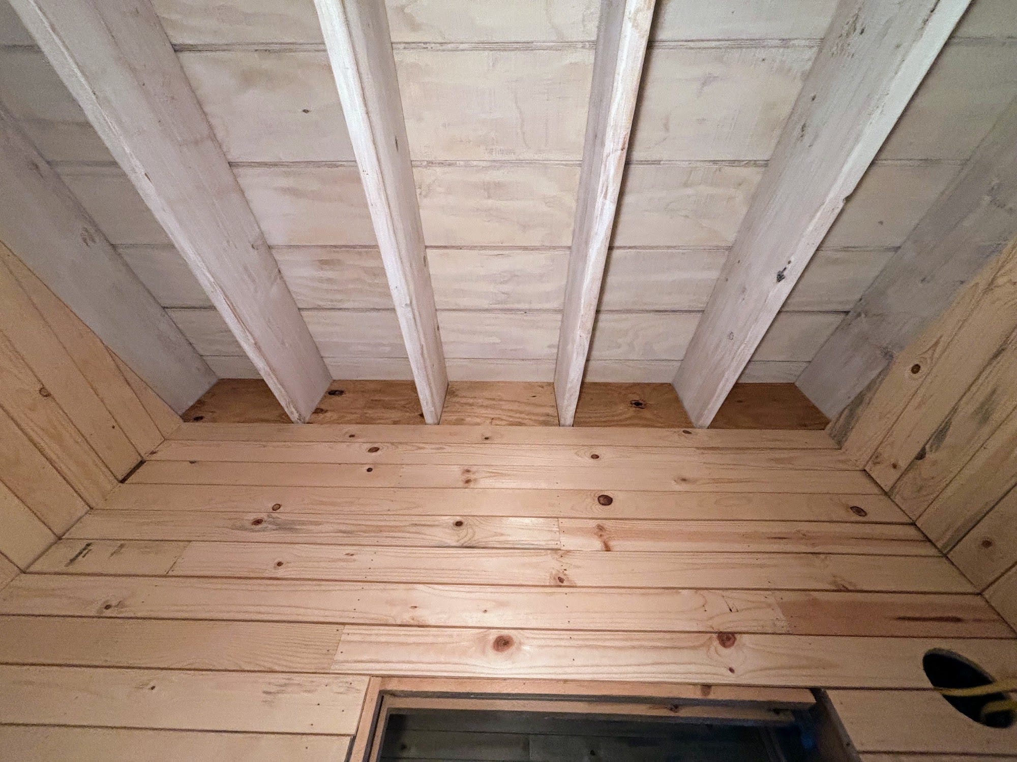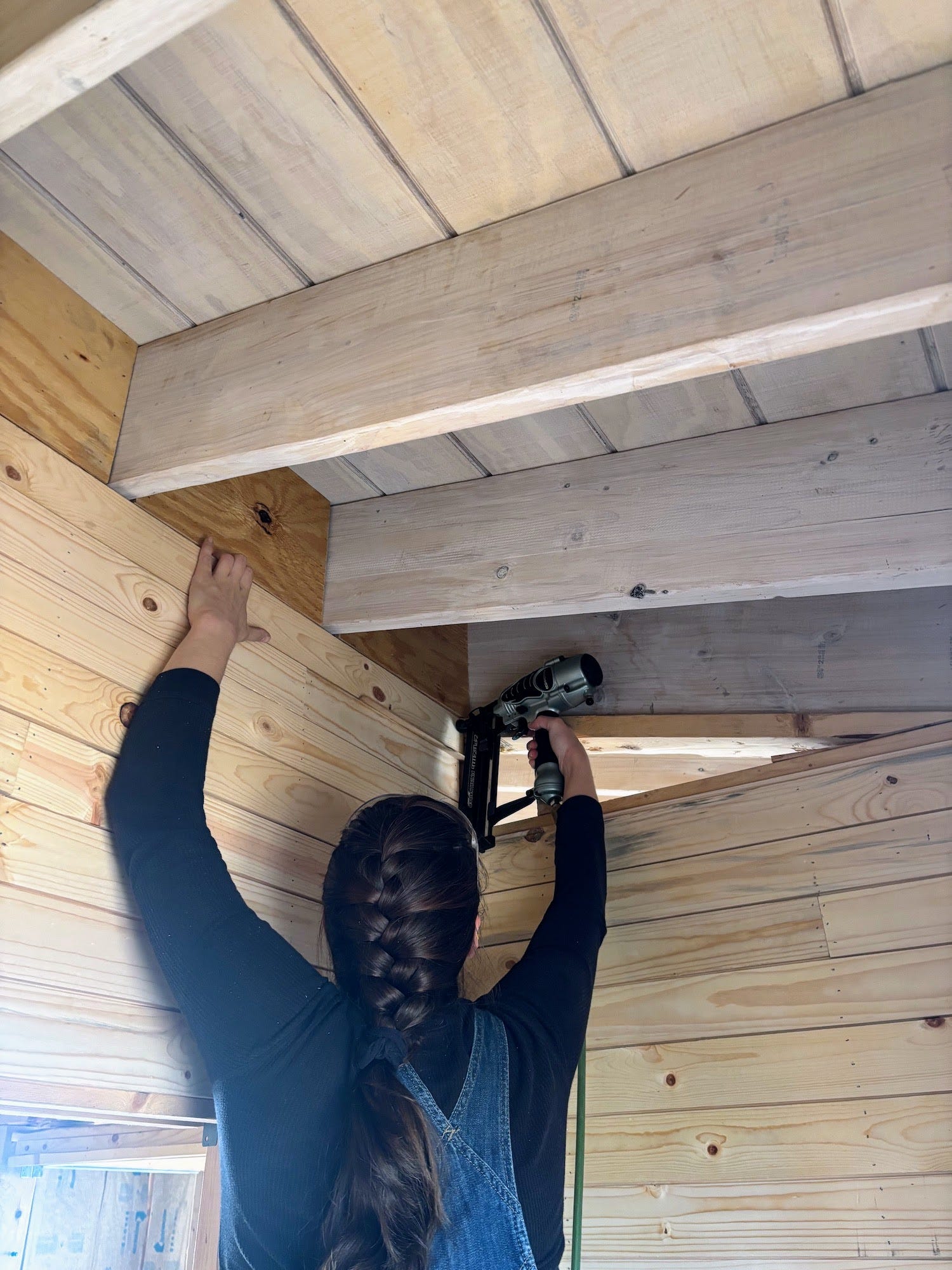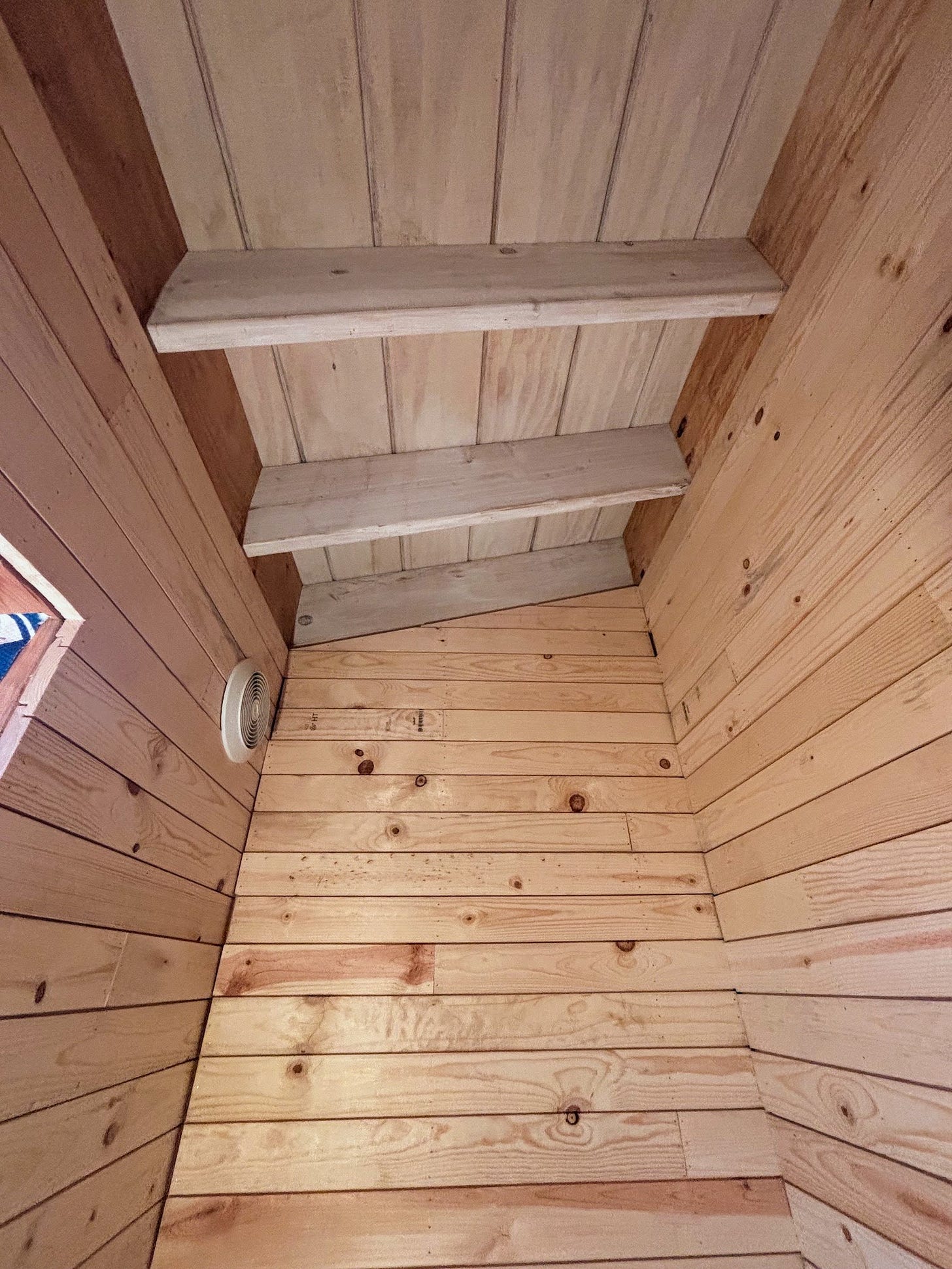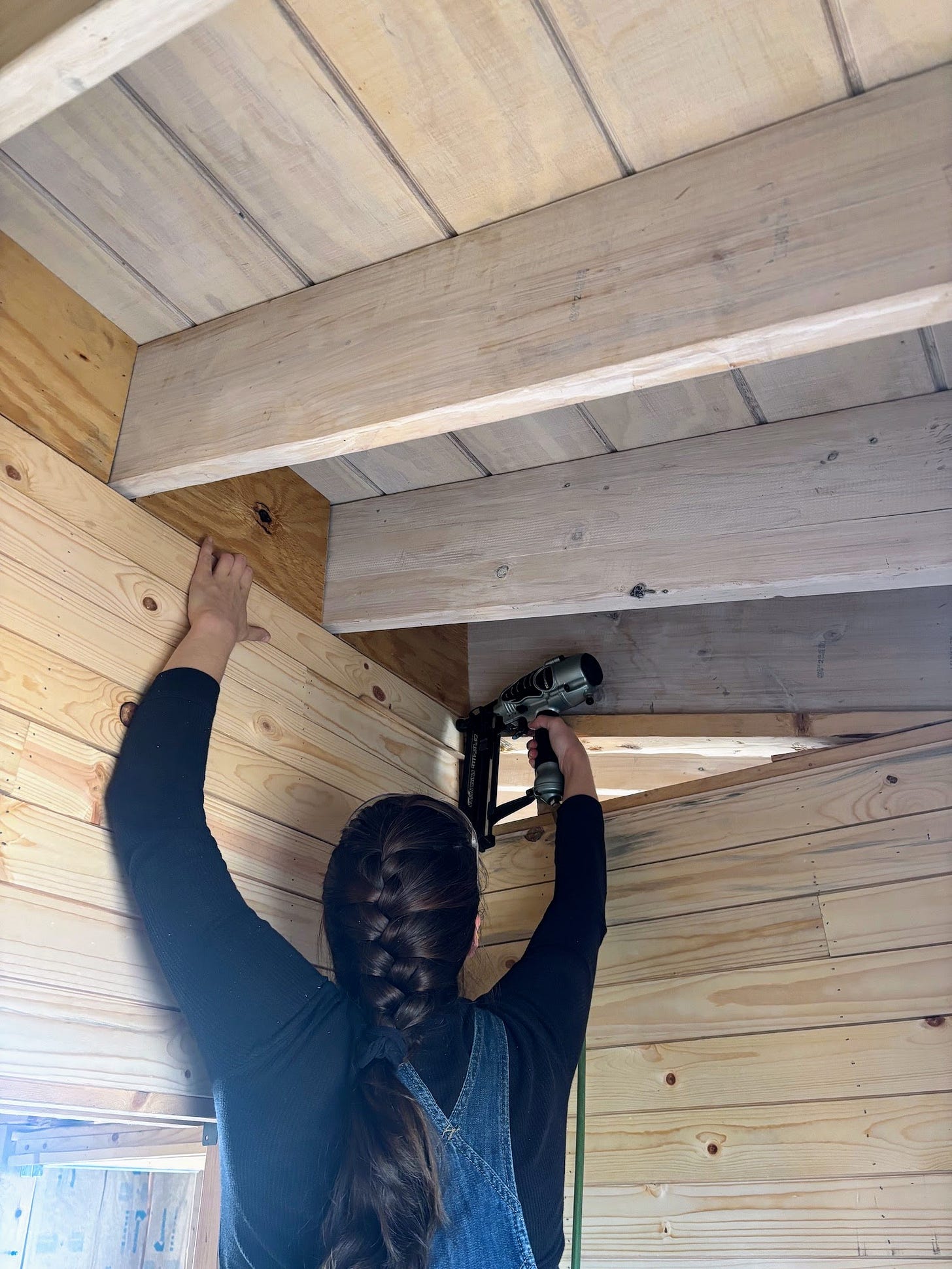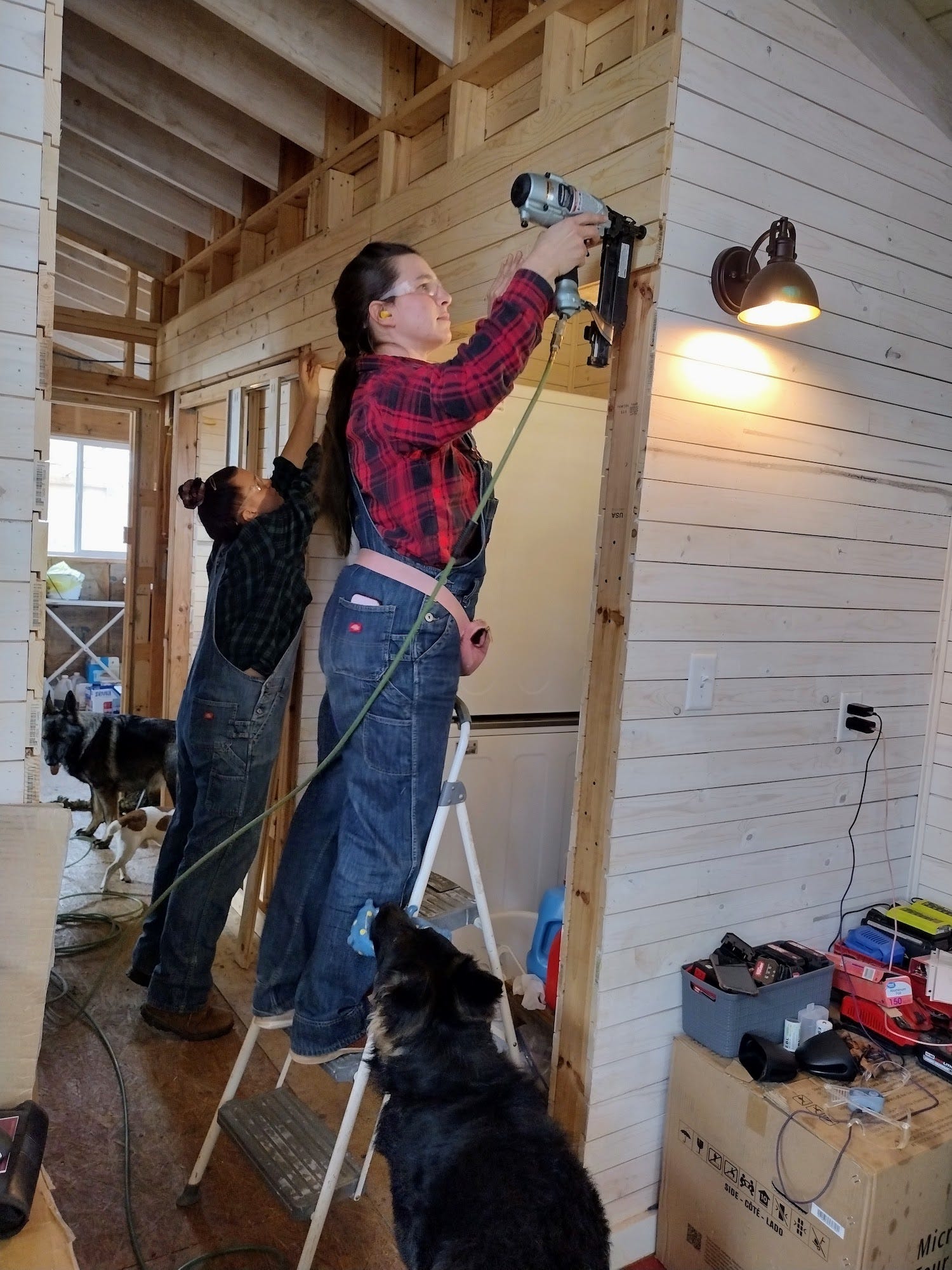 After our morning routines, we worked on the bunkhouse. Most days this week, our focus was on interior siding. It was monotonous -- which was a relaxing change. We finished the half-bath and made progress on the hall.