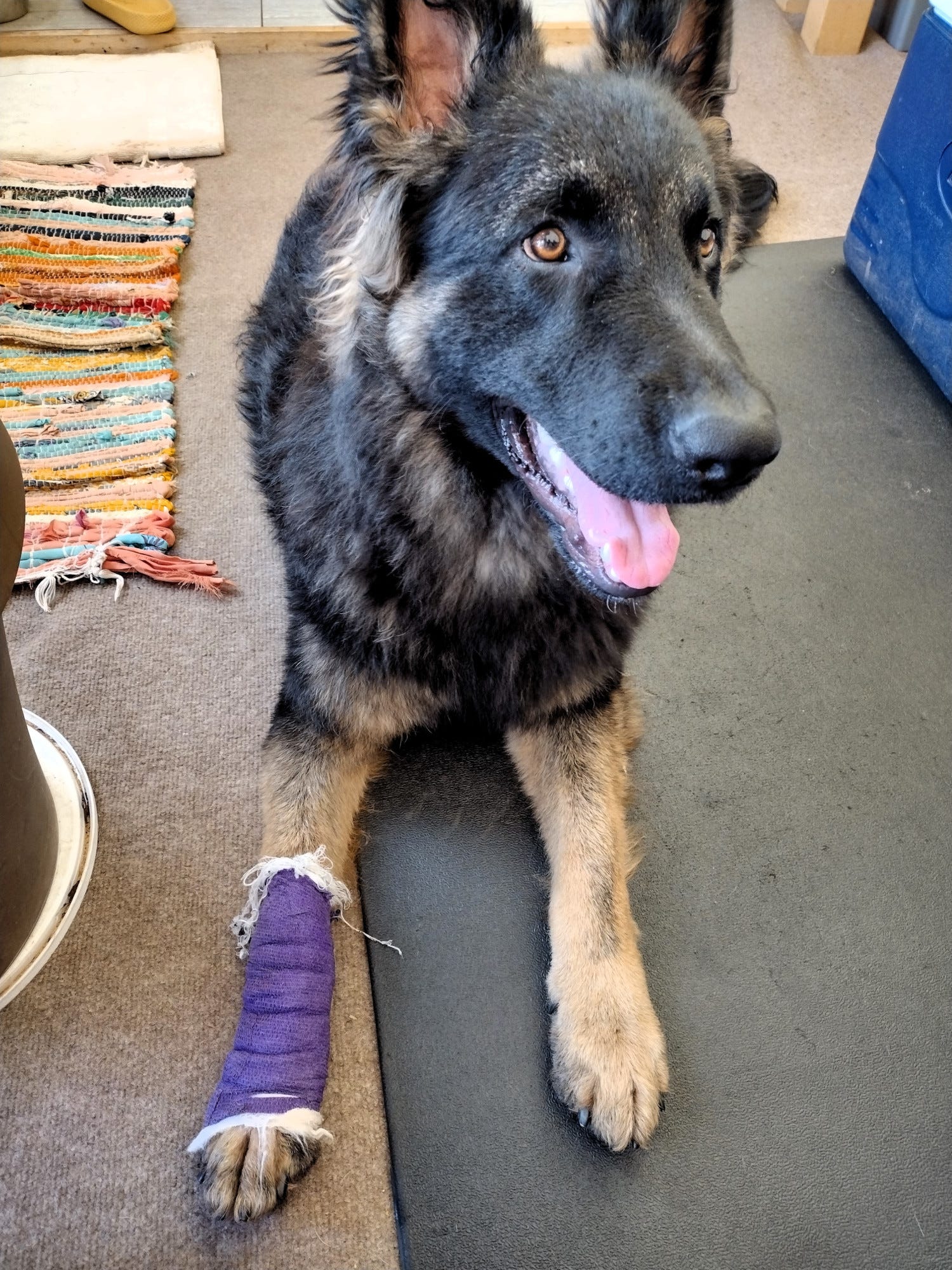 Unfortunately, a large part of Bonnie-Jean's time was taken up with the German Shepherds this week. A couple weeks ago, I mentioned how Dagger had to go t0 the emergency vet in Fair Grove, as a thorn in his paw had turned into a swollen mess over the weekend. Since then, Dagger has been to our local vet once and had a much-needed return visit canceled do to a clinic scheduling error. Finally, Jeremiah decided to take Dagger to Bradford Park Veterinary hospital in Springfield -- where he had taken him as a new puppy after he had some toxicity symptoms.