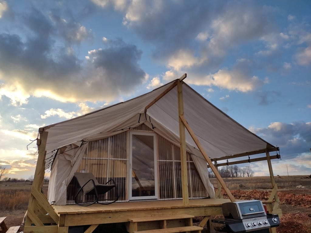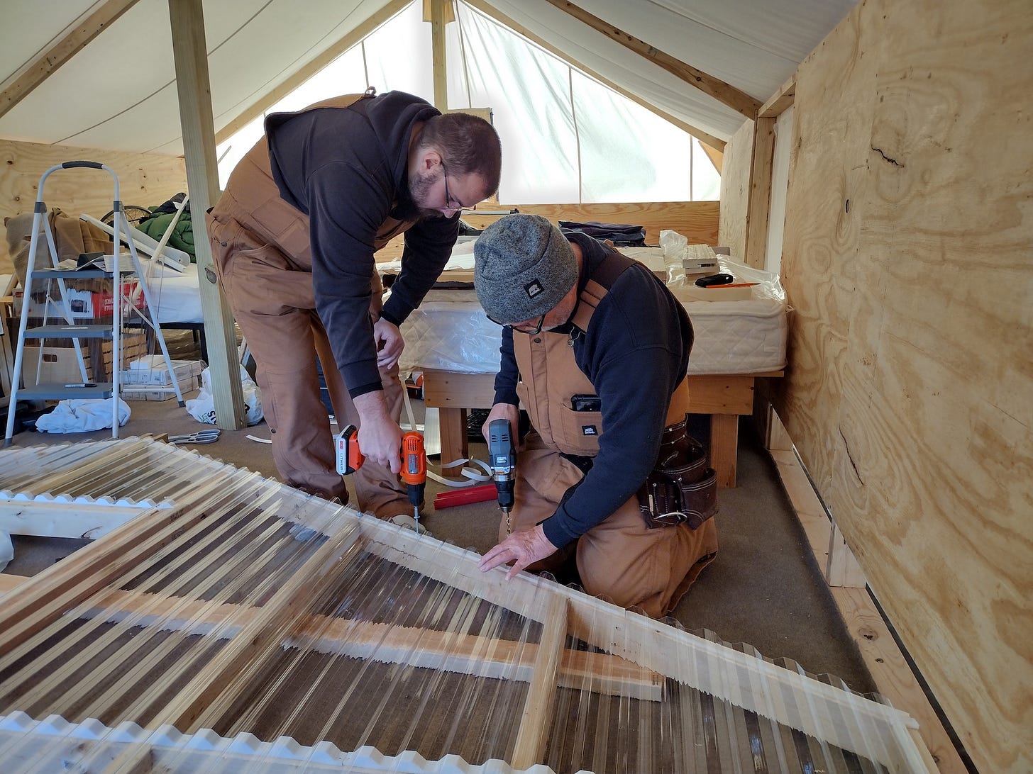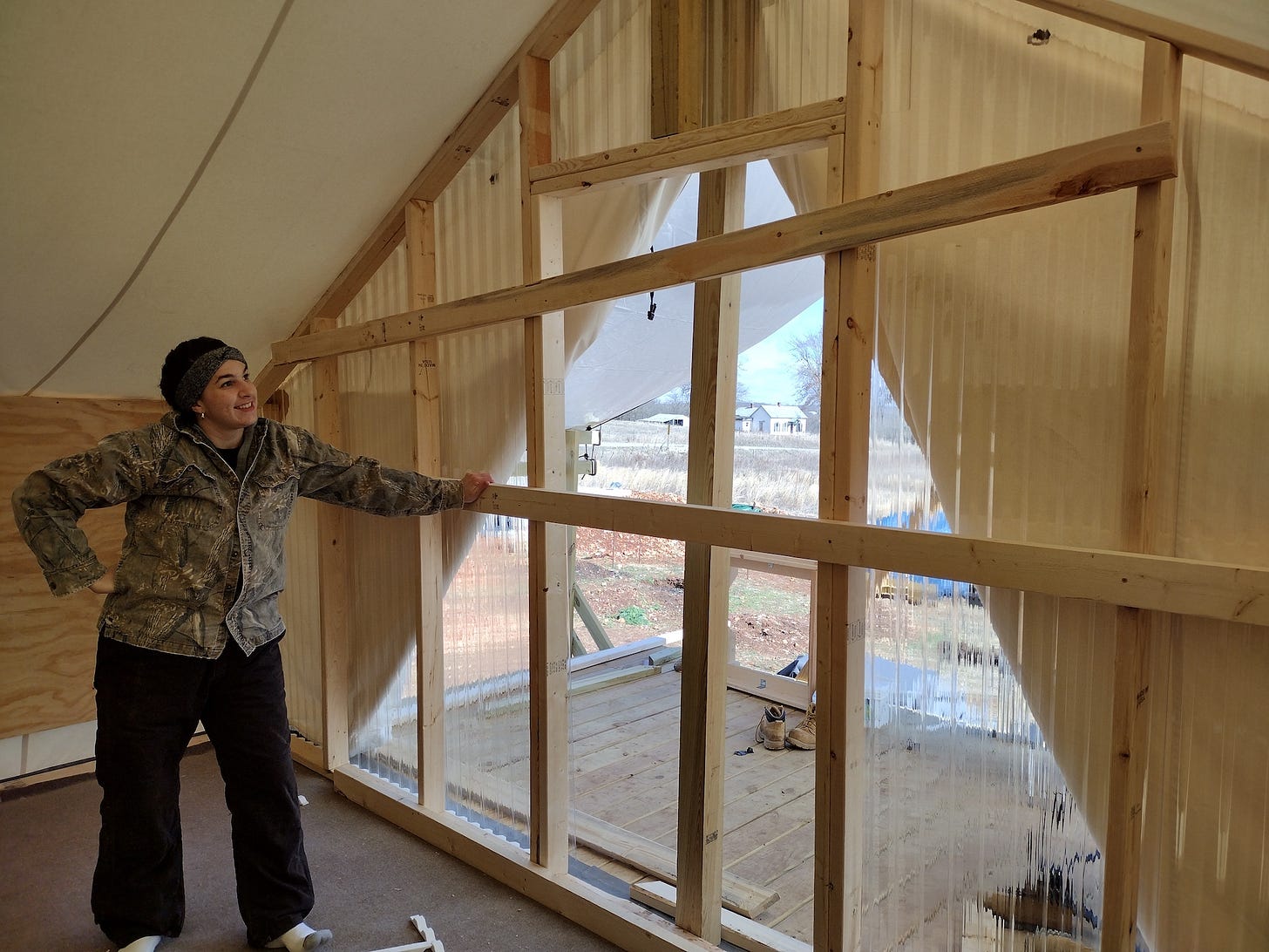 We finished our tent wall this week -- finally! It shouldn't have been such a hard thing, but as with so many aspects of this project, we are relearning so many forgotten skills that sometimes we make more work for ourselves. But learn we did, and that's always a victory.