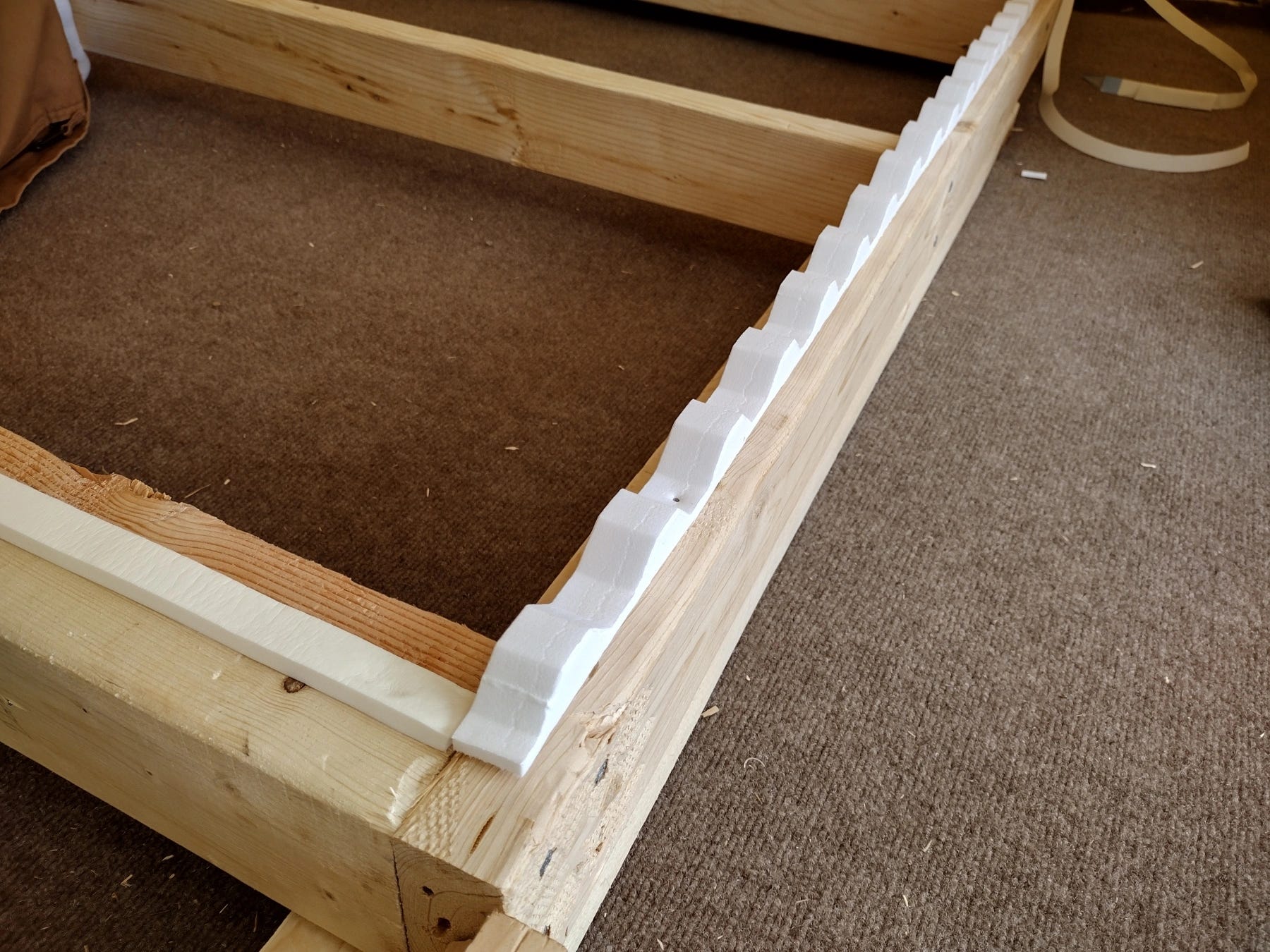 We built the wall laying down in the tent. Standing it up and into place was complicated, since we had to slide it past the place where our ridge pole is joined together with a bracket. We managed it with lots shoving and some hoisting of the ridge pole. I was so relieved to have the wall finally in position, I wanted to do a happy dance.