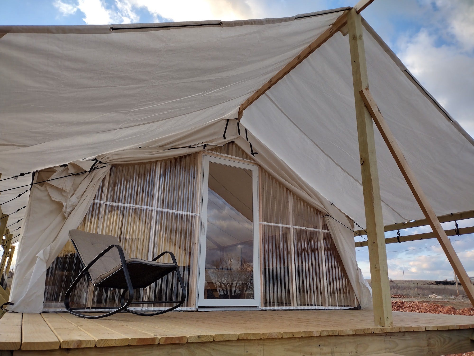 We zipped everything back up when we were done for the day. When we start camping, we will do a better job getting it tied back for good.