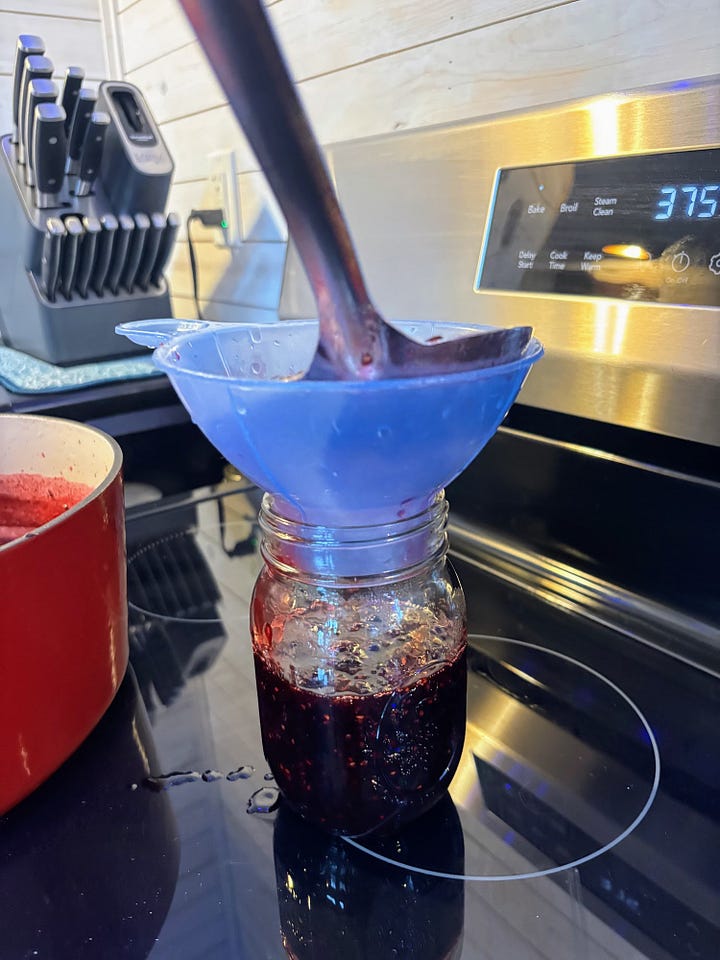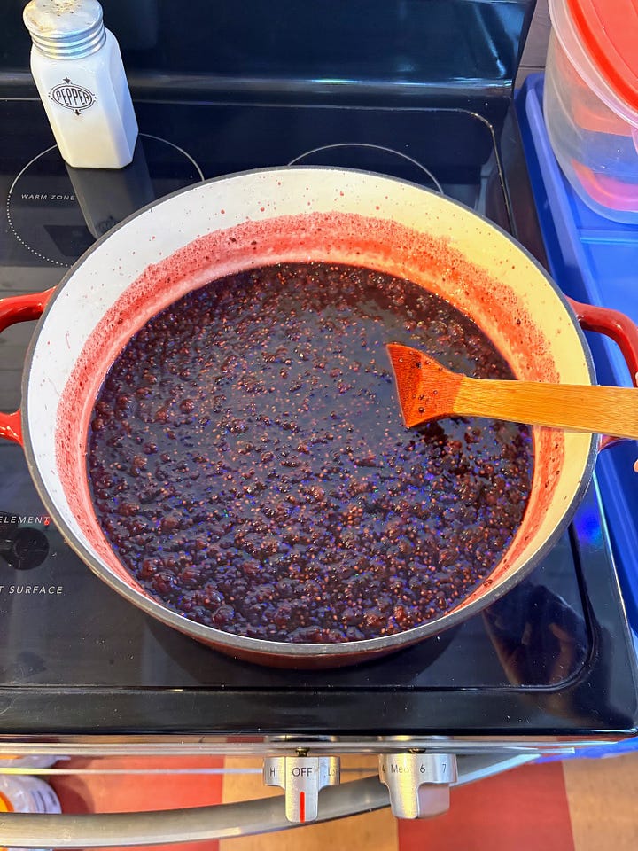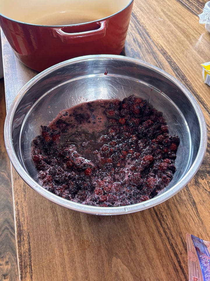 On Friday, we made a batch of blackberry jam with blackberries we picked last summer. We have had the ingredients for this jam for ages, but we simply hadn’t made time to prepare it.
