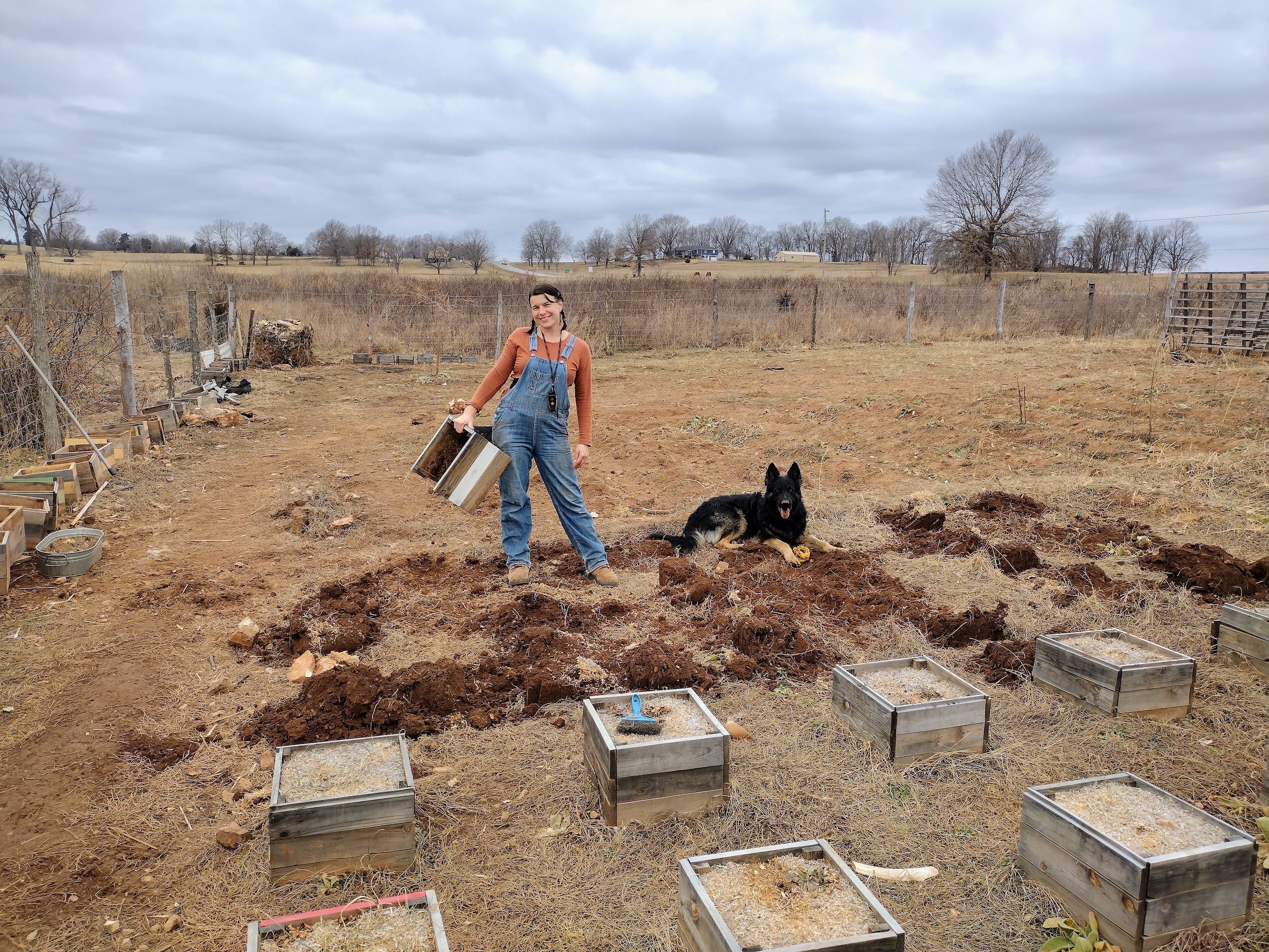 Bonnie-Jean started prepping our garden for the new season. We want to rotate the location of our various little crops in hopes it reduces pest issues. This week, Bonnie-Jean started dumping out and moving the squash boxes — the mini-raised beds we use for each summer squash plant. She is putting the dirt back into rows so that it’s ready for another season of vegetables.