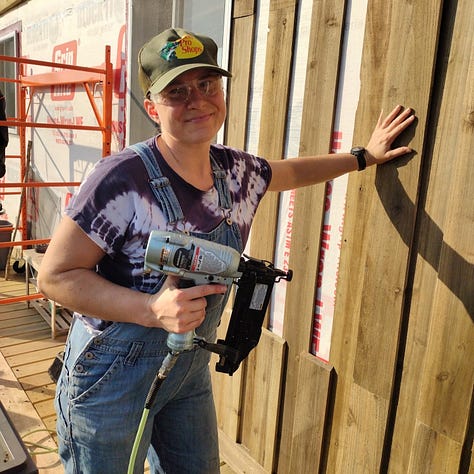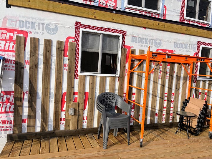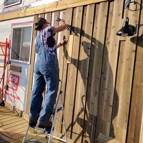 Bonnie-Jean and I also spent time working on our exterior siding, along with our dad and brother Jeremiah whenever they were off work. We are so close to being finished with the siding — we all can see the proverbial light at the end of the tunnel. We had to dip a few more boards in Eco Wood Treatment this week — we are dipping just small batches as we don’t know exactly how much more we will need. The more we have worked with Eco Wood Treatment, the more we love it. Even after we are finished with our siding, I have a feeling we will be keeping a package of it on hand for smaller homestead projects.