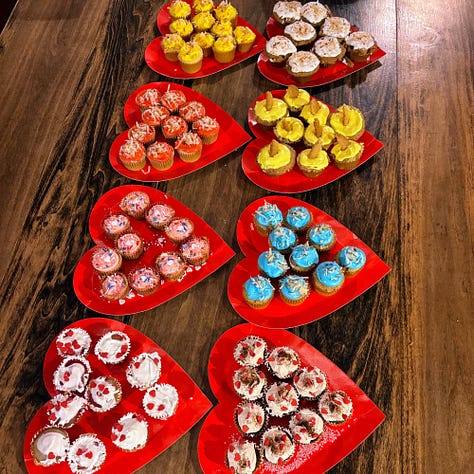 It was Valentine’s Day yesterday. We sisters made some of our great-great-grandma’s tea cakes first thing in the morning. Our brother Jeremiah threw his annual Festival of Hearts party. Once again, we sampled more than a dozen international candies. We all competed in a no-recipe cupcake bake-off. And today, we will finish with the always humorous Valentine’s TMI trivia game. It has been a very festive ending to the busy week.