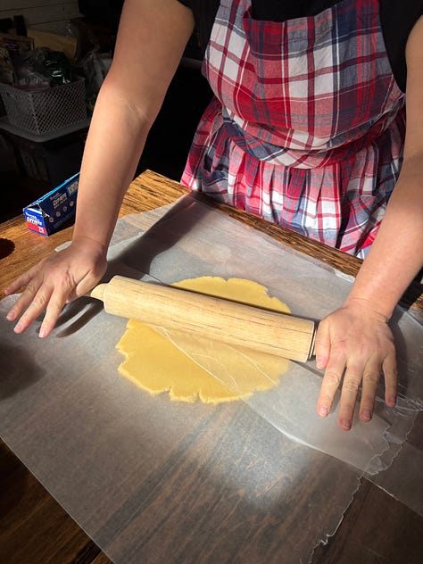 On Saturday, we went shopping in Bolivar, stocking up on groceries for the next couple weeks — no small task since we have a lot more festivity to look forward to. We spent the afternoon whipping up Superbowl snacks — though we aren’t sure if we will tune into the game this year since our beloved Chiefs aren’t playing (sniff). Either way, we plan to watch The All-American Halftime Show, an alternative from Turning Point USA. While the rest of the Gage ladies made snacks, Grace made a basbousa (a middle eastern cake), in honor of Saint Josaphine Bakhita, who we remember today.