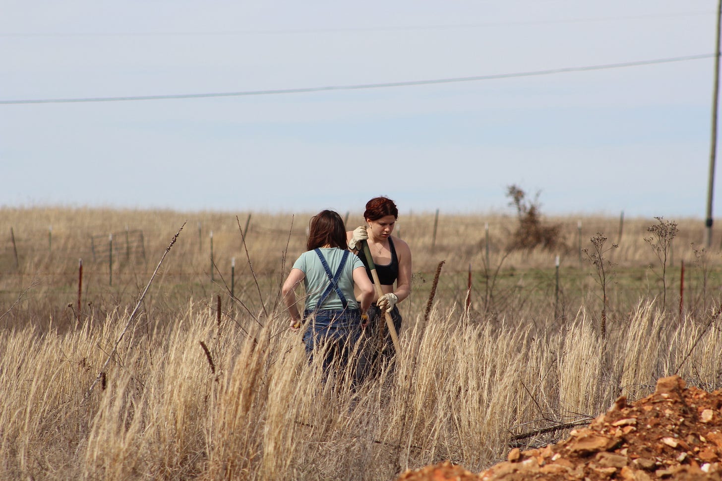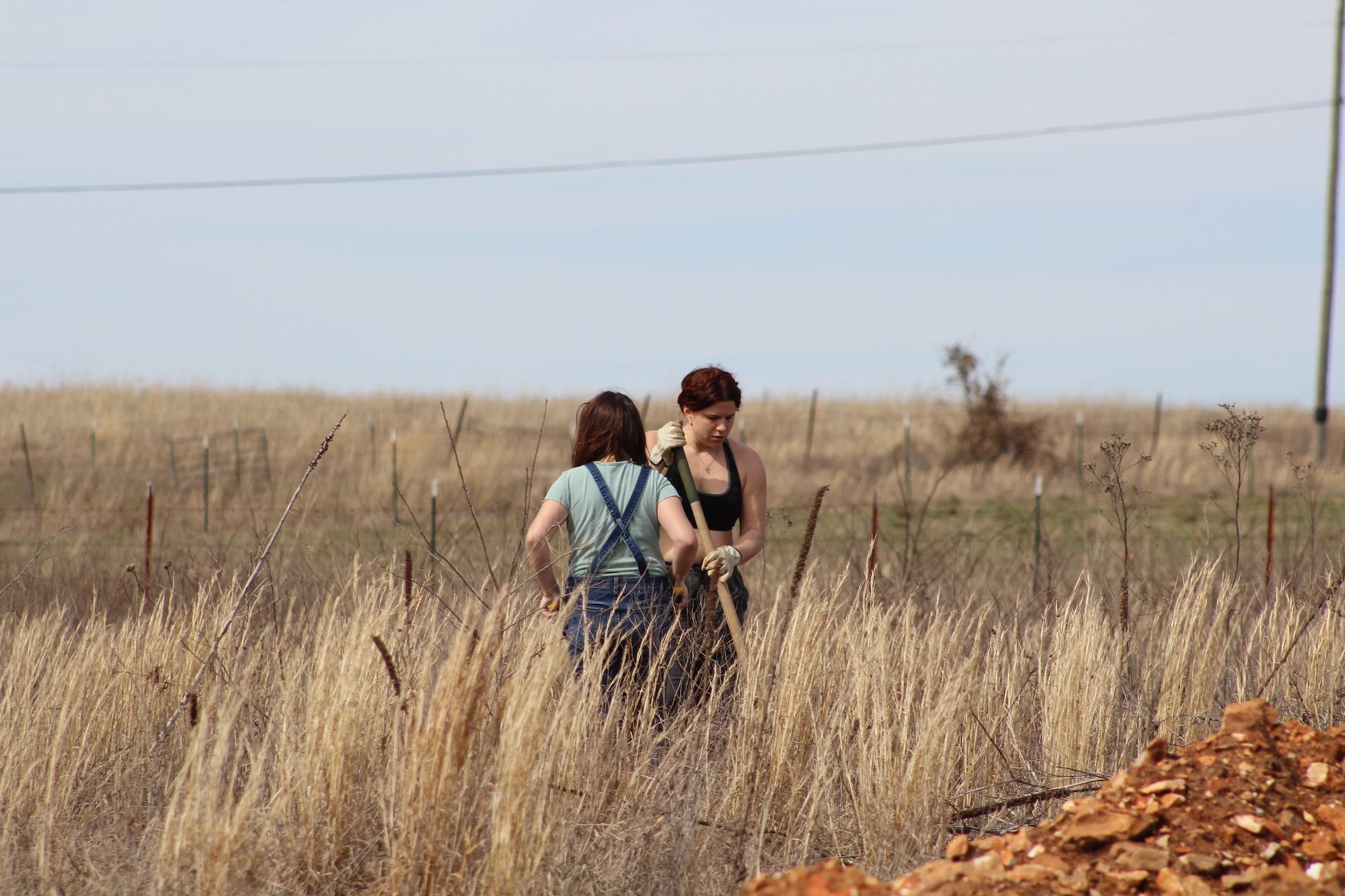 While Grace and I helped the guys work on the shed, Bonnie-Jean broke ground on a garden area. Since we don't have the appropriate implements for our tractor yet, she, Erin, and the kids made a good beginning using hand tools.