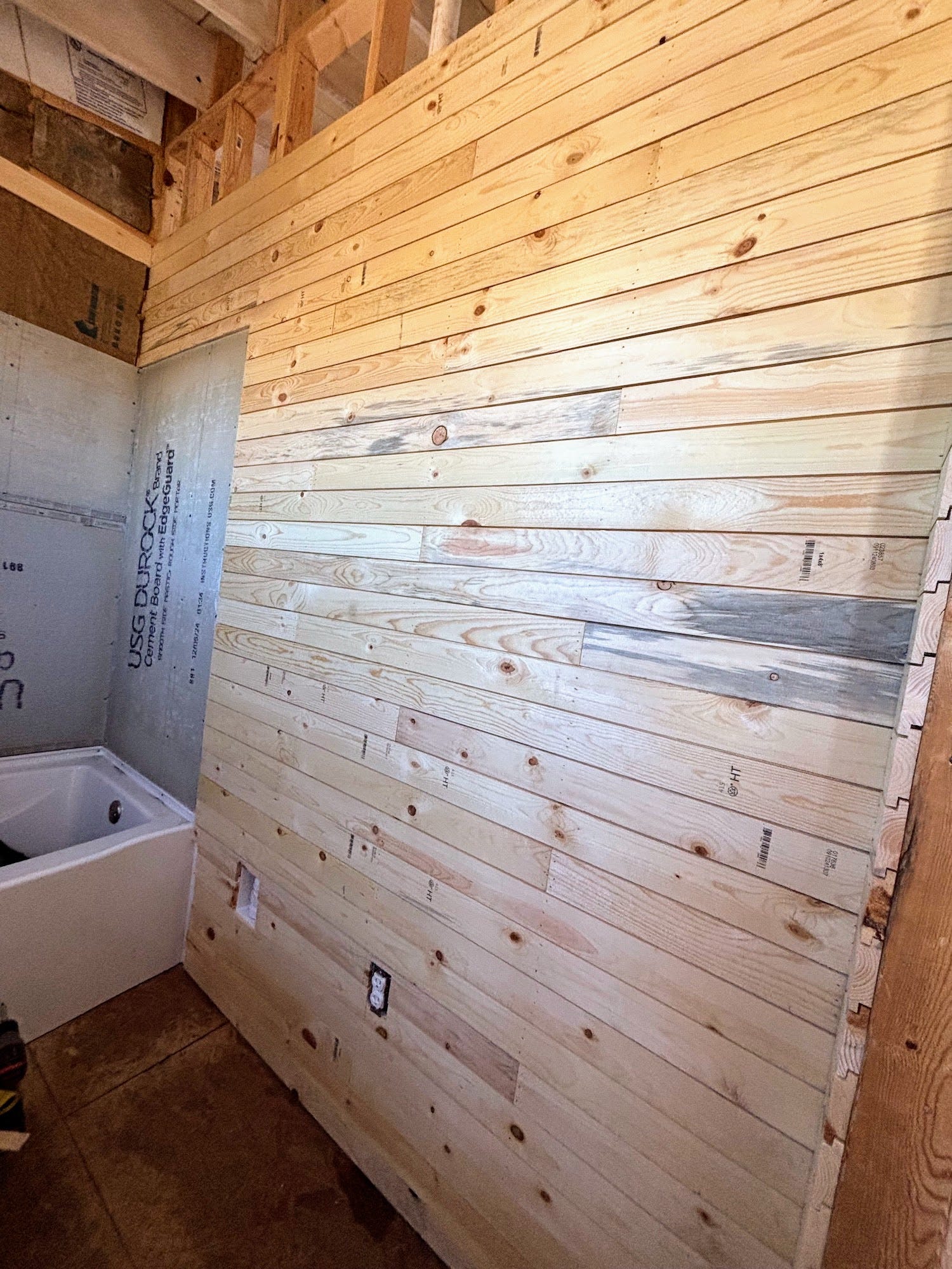 And whenever we found time between other tasks, we worked on siding our full bathroom. Sometimes it was Grace and I, other times Grace and Bonnie. We came back to it whenever we had time, almost finishing on Friday.