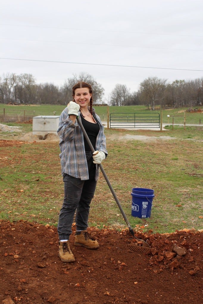 While the rest of us worked on doors, Bonnie-Jean worked on filling in the waterline ditch to our bunkhouse. The well company had offered to fill it in, but we wanted to take advantage of the free digging to run our power line. After calculating the cost of the wire, though, we decided we will take a shorter route. This will require more digging, but the savings will be worth it!
