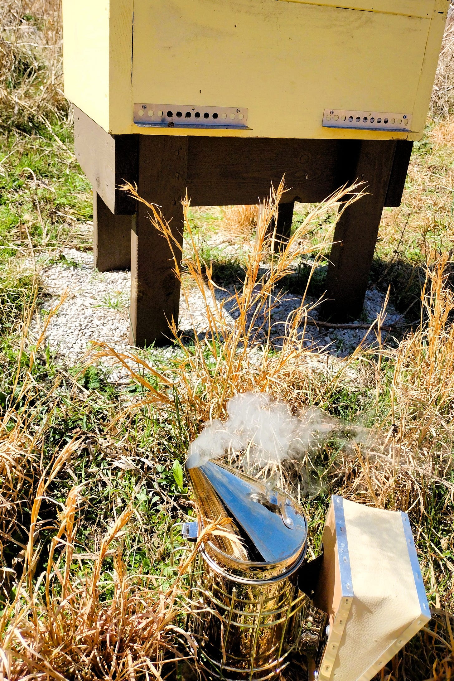 Once my knee felt better, I enjoyed getting out in the springlike March weather. I checked on our bees one afternoon, refreshing their sugar syrup.