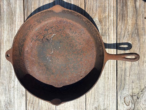 One afternoon, Grace used sanding tools to strip two very rusty cast iron skillets. It was a bigger job than we expected, but the end results are promising. We plan to season them indoors on Monday when it is cold.