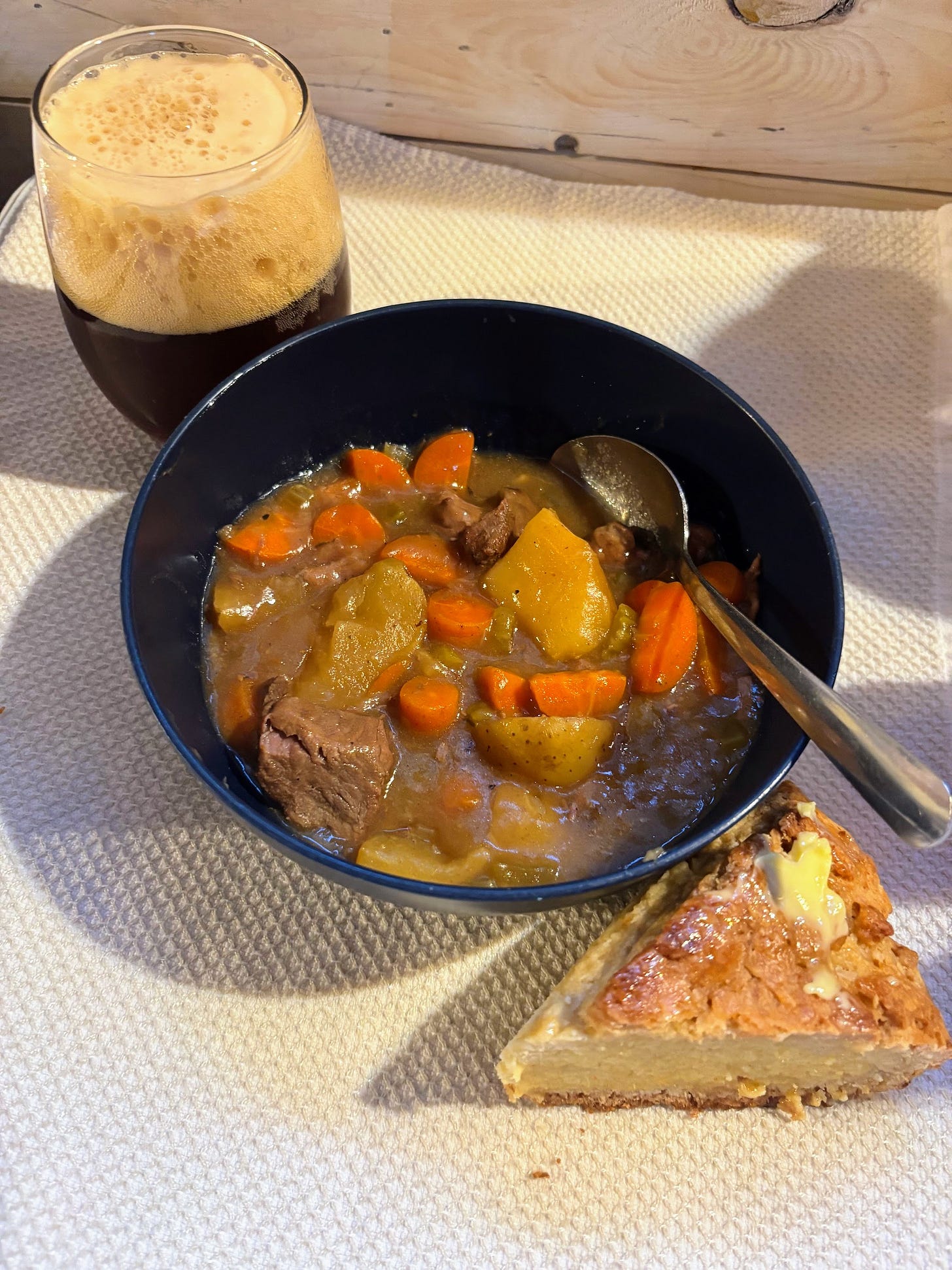 For dinner, we whipped up our favorite Irish beef stew recipe. This year, we used our home brewed red Irish ale in the stew, which turned out wonderful. We served it with some homemade Irish soda bread and, of course, more of our Irish ale.
