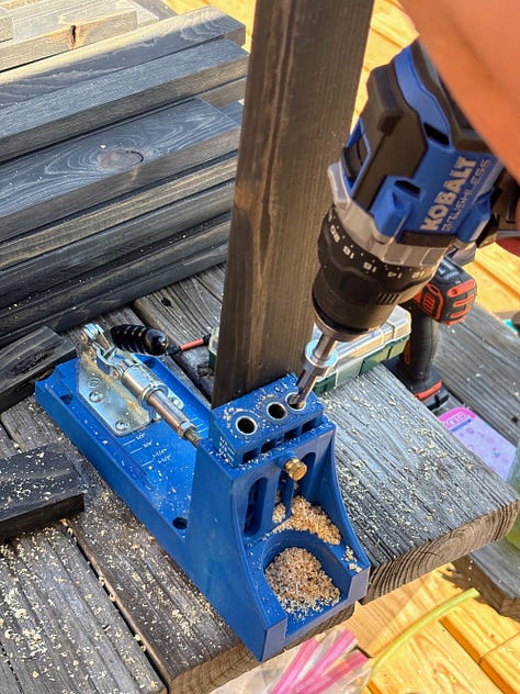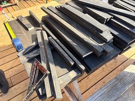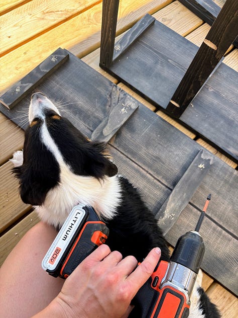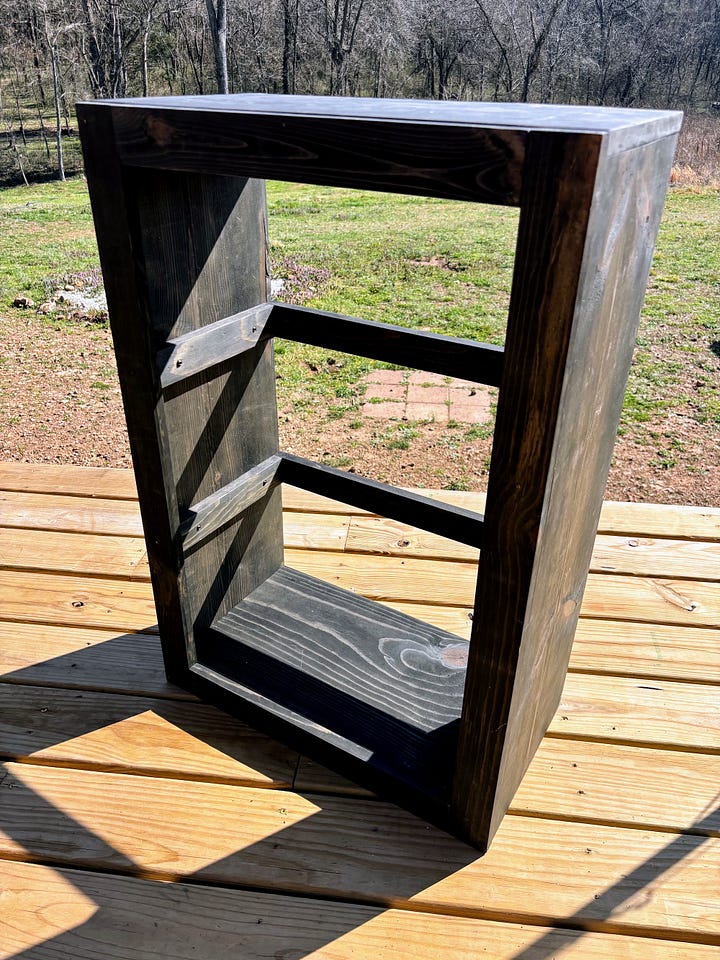 When we weren’t celebrating, we finally got started on our kitchen shelves. Deciding how to put them together was quite the project, but we brainstormed together — Grace, our dad, and I. We have the first unit put together, and the rest will soon follow.
