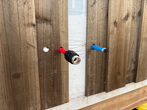 Levi was off this week, so he made a lot of progress on all kinds of projects. He used our brush cutter to clear around our garden area. He relocated one of our exterior shower lines, as we had accidentally placed them too far apart for standard outdoor fixtures. He also worked on sanding the floor boards for his family’s suite of rooms in the bunkhouse.