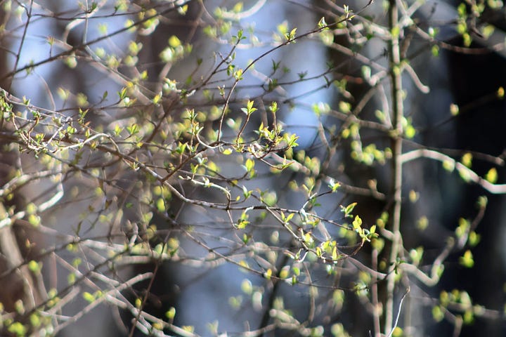 It was a wild ride of weather this week. We watched snow fall last Sunday, and by Friday we were sweltering in the upper 80s. Where Monday found me curled up under blankets with a knit stocking cap on, by Thursday I was keeping cool with my feet in the creek. March is indeed a carnival of temperatures.