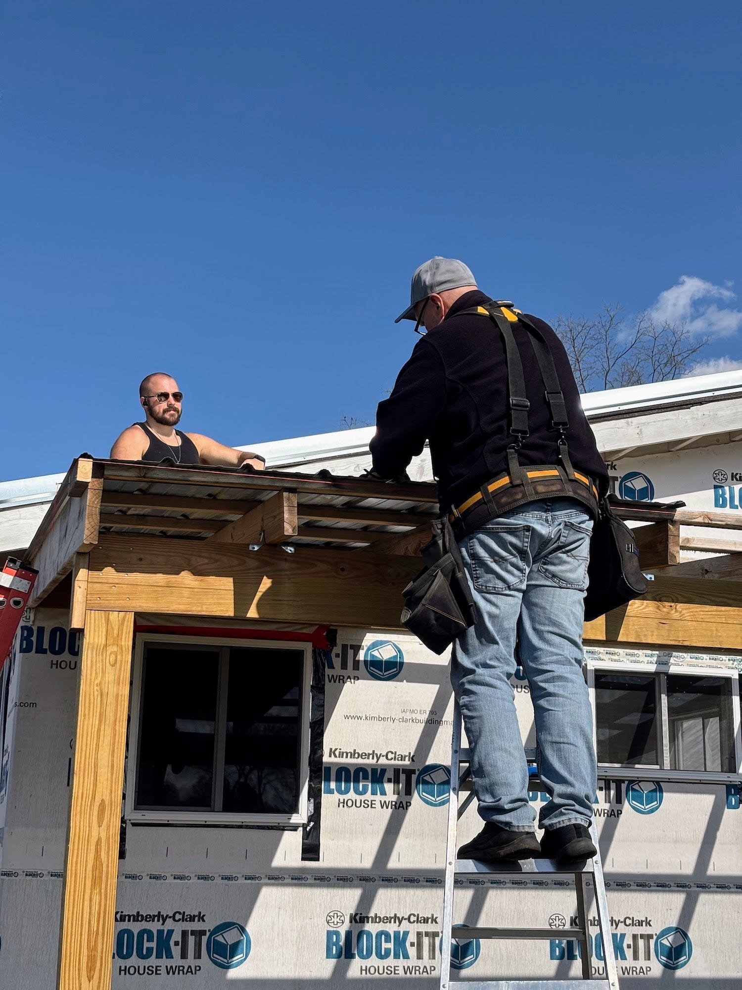 We also took care of some smaller projects. We were having problems with the pocket doors we had already installed being scratched -- somehow they were making contact with certain parts of their frames. Our dad carefully took siding boards off and fixed the issue. We also purchased felt to adhere inside of the frames, to avoid future scratching or scuffing.