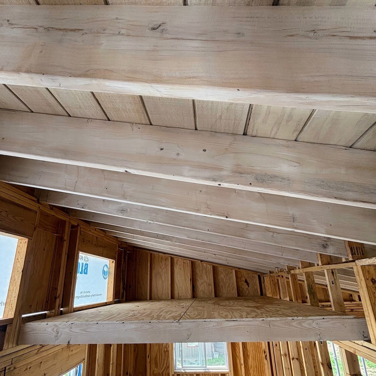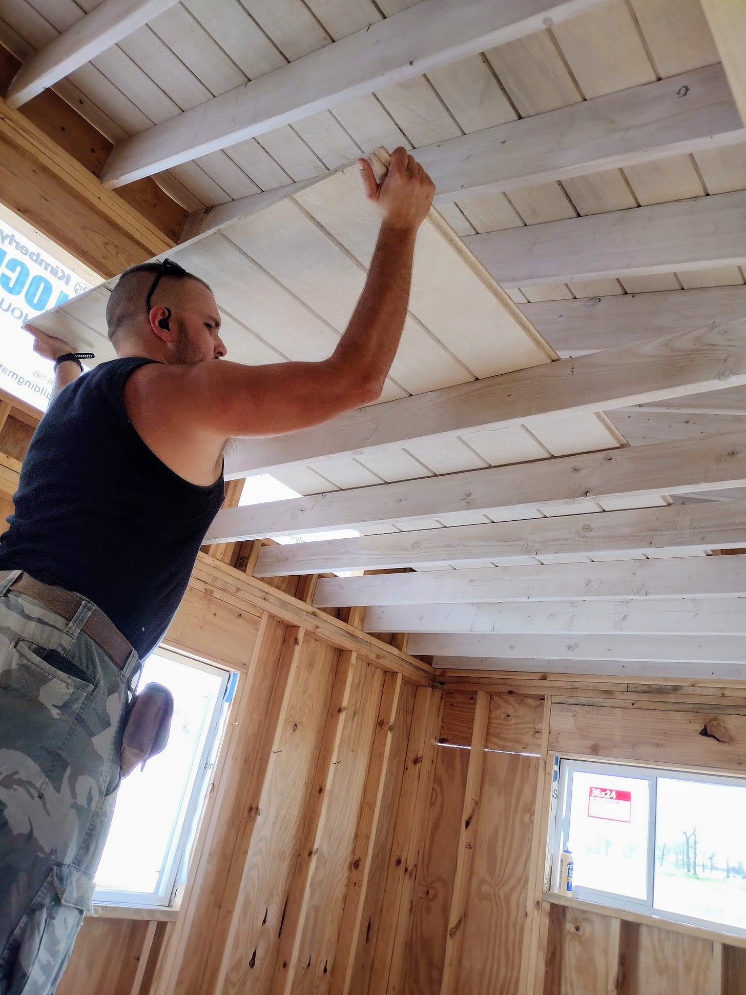 While they worked on the tub and plumbing, I helped Jeremiah build the sleeping lofts. We put one up in the room I'll share with my sisters. We put another up in Levi's kids' room. Because Grace had done the prep work, the project went smoothly. When our dad was finished with the bathtub, he helped add some blocking to the lofts.