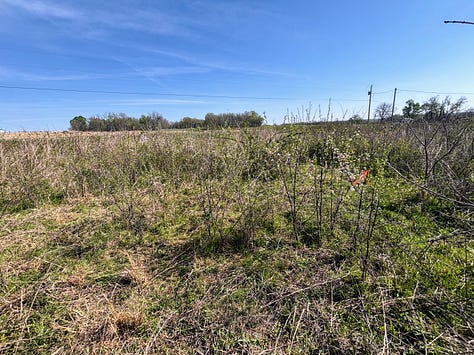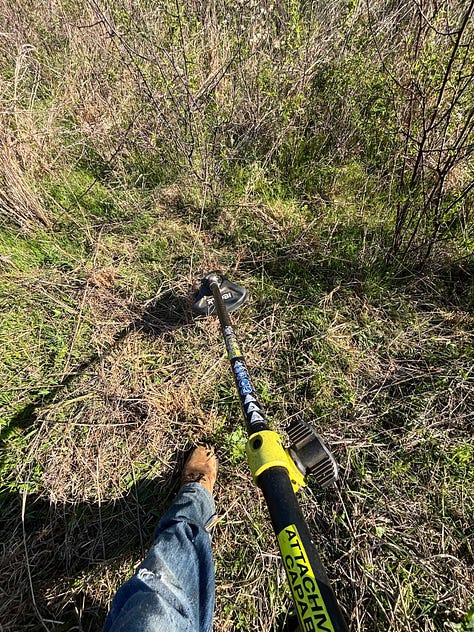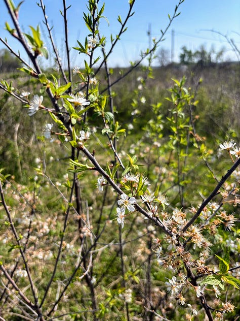 On the bright side, we think we found a wild plum patch growing just beyond our garden. We could be wrong, but the fluffy white trees certainly look like wild plum trees. Grace did some brush cutting and weed eating in the area so that we can keep an eye on the trees and see if they fruit this summer.