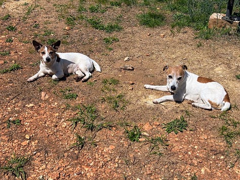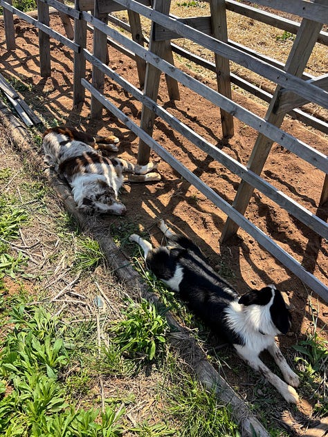 Grace and I worked a bit on our shelves, though we are still dealing with finish issues. After we tried adding additional stain to a couple boards, we made the decision to sand several down and start over, which was rather discouraging. Still, the weather was lovely — and our dogs kept us company.