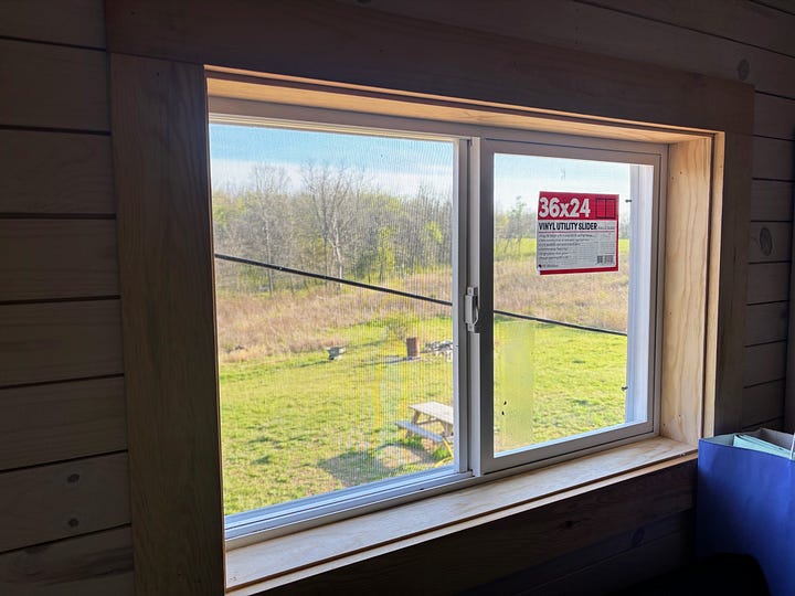 On Tuesday, we started in on some spring cleaning. Our new curtains and curtain rods arrived in the mail, but we don’t want to put them up on dirty windows. We also did some reorganizing: we cleaned off our lighted plant shelf so we could start our seeds. We had been storing appliances on the shelf over the winter, and we had to do some shuffling around to find them a new home. We managed the task, however, and dispersed things so efficiently, the house doesn’t look any more cluttered than it did before. While most of us cleaned, our dad helped Bonnie-Jean and then Grace install trim in our loft windows. Our new curtain rods install on the trim, so we needed the windows finished.
