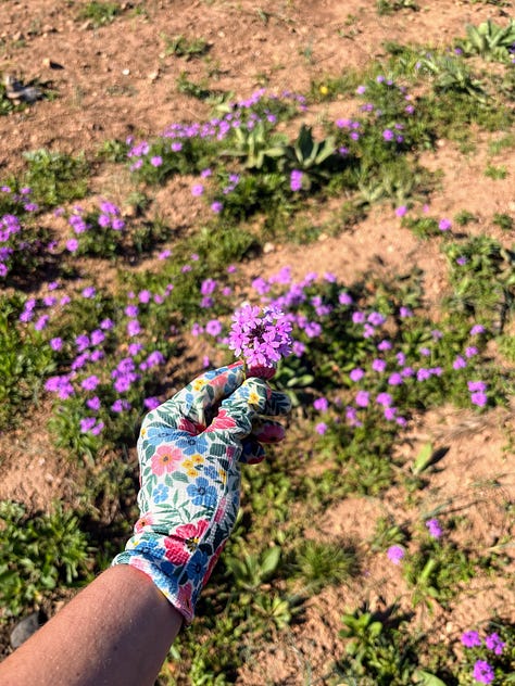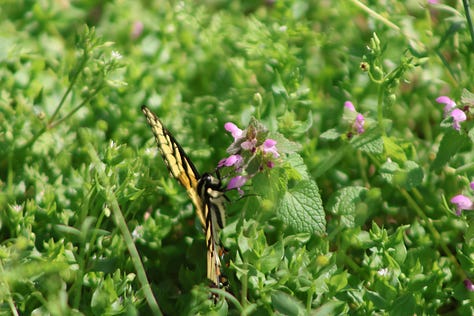 It was a beautiful Easter week. The alternating sunshine and rain fueled the annual greening, with each day seeming more lovely than the day before. Tiny wildflowers now accent the grasses, and some of our domestic plants are blooming as well. We enjoyed spending lots of time outside — gardening and just enjoying nature.
