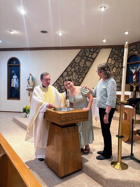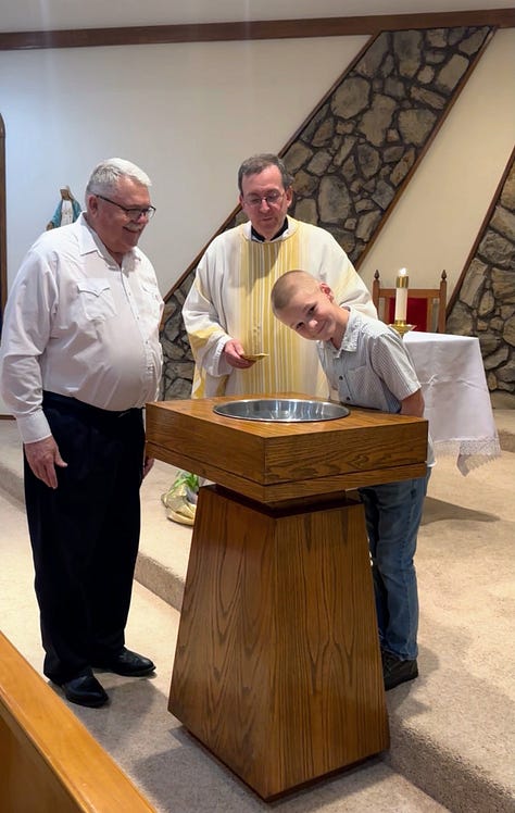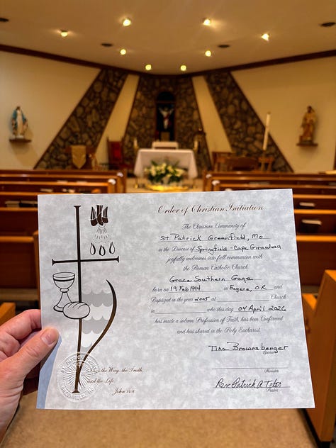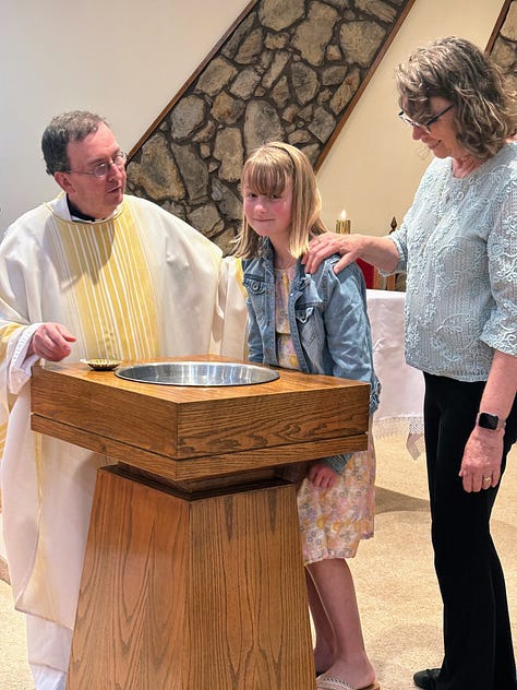 On Saturday, we spent most of the day cooking. In the evening, our family attended our first Easter Vigil service. We were all welcomed into the Catholic Church. Levi’s kids were baptized. Then they, along with those of us already baptized, received the sacrament of confirmation. Finally, we all celebrated the Eucharist. It was a precious service that we will all remember forever.