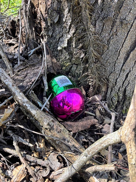 Today truly felt like a celebration. It was one of the most special Easters we’ve ever had. This afternoon, we had our family egg hunt. Jeremiah hid eggs all over the property, for kids and grownups alike. We all hiked around finding them geo-cache style using an app he built.