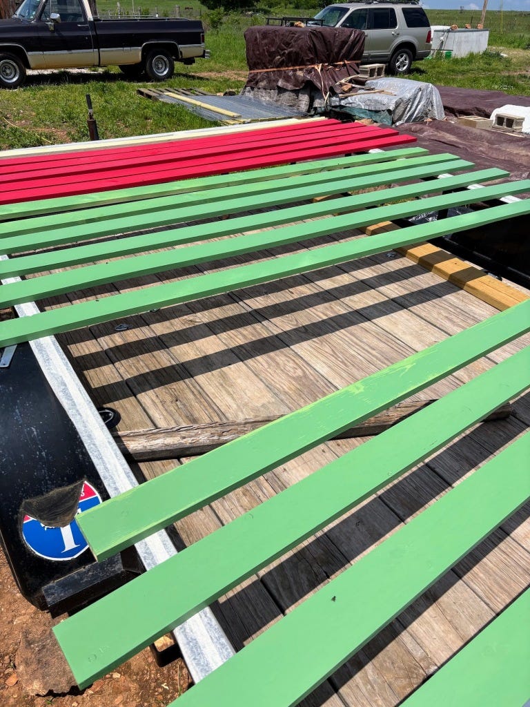 While we worked on the shower, Grace worked on painting trim boards for our room. After beginning with a traditional brush, she switched to our electric paint sprayer and made it a much faster progress.