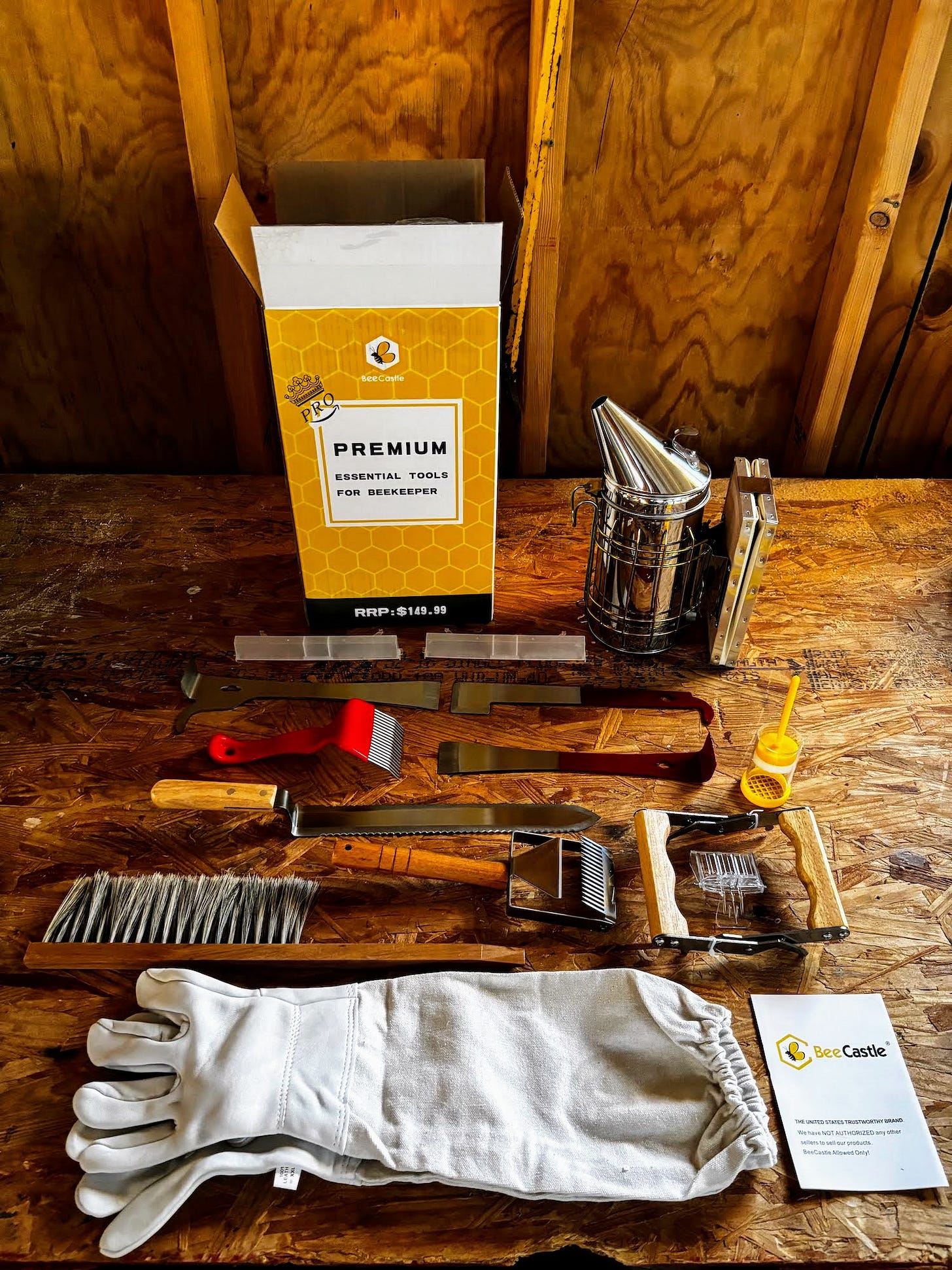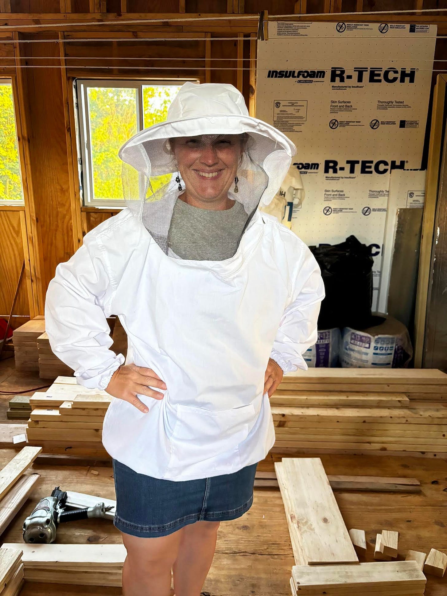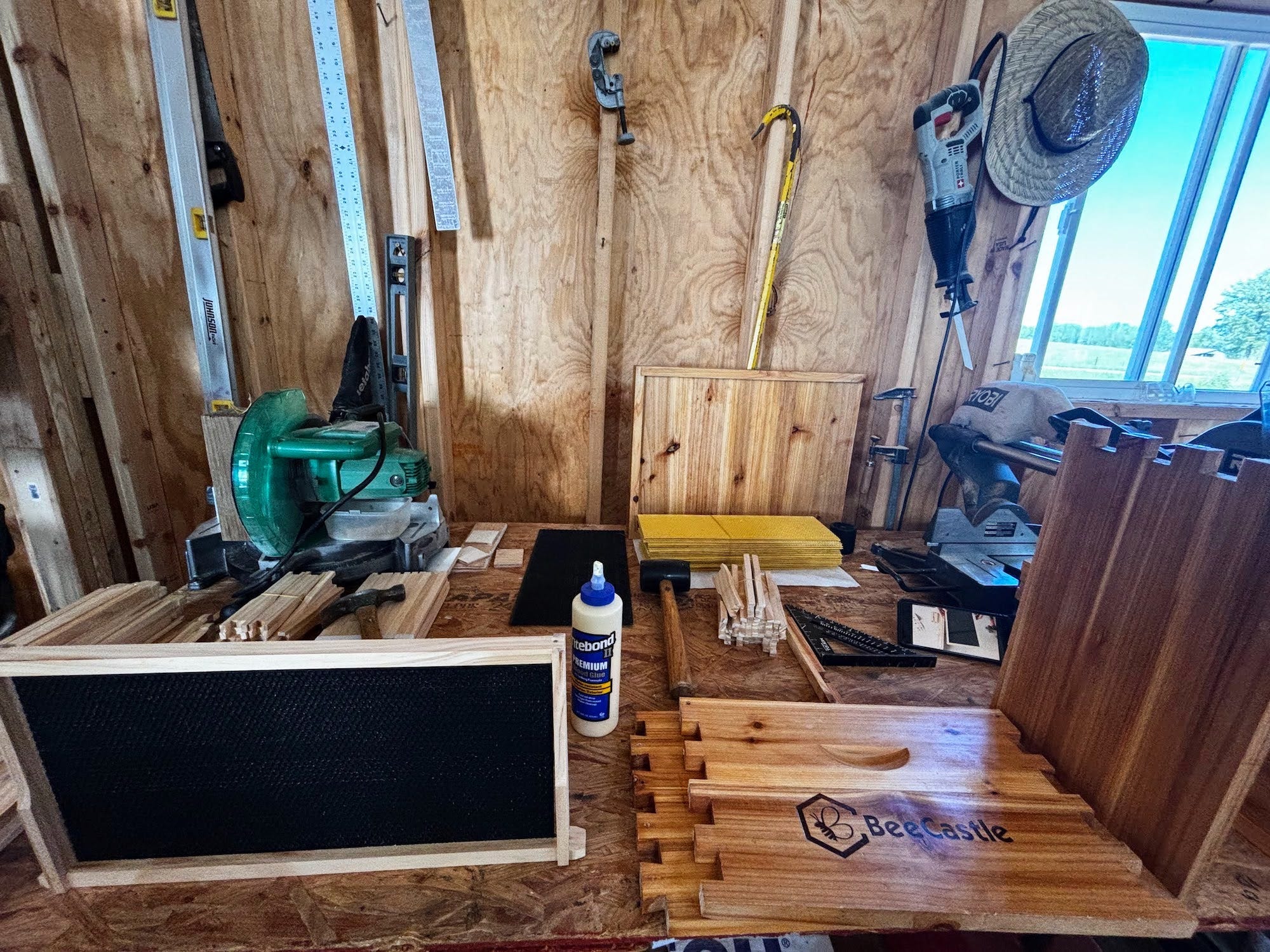 When we weren't in the garden, we worked on our apiary. I researched and ordered supplies for bee care. Grace and I assembled the Bee Castle Langstroth hive Jeremiah gave the family for Christmas. Grace, Dad, and I also worked on building two Layens hives. I used the Layens hive pattern from Dr. Leo Sharashkin's website, as well as his stand and peaked roof. Grace sanded all the pieces before we added the tongues, grooves, and rabbets. Dad helped us figure out our new Skil table saw and Kobalt router. Our beekeeping supplies arrived last night. The Bee Castle kit looks great (it was more affordable than buying everything separately). Erin modeled the beekeeping jacket, which is light weight and comfortable. Hopefully we will be moving some of bees into their hives this weekend!