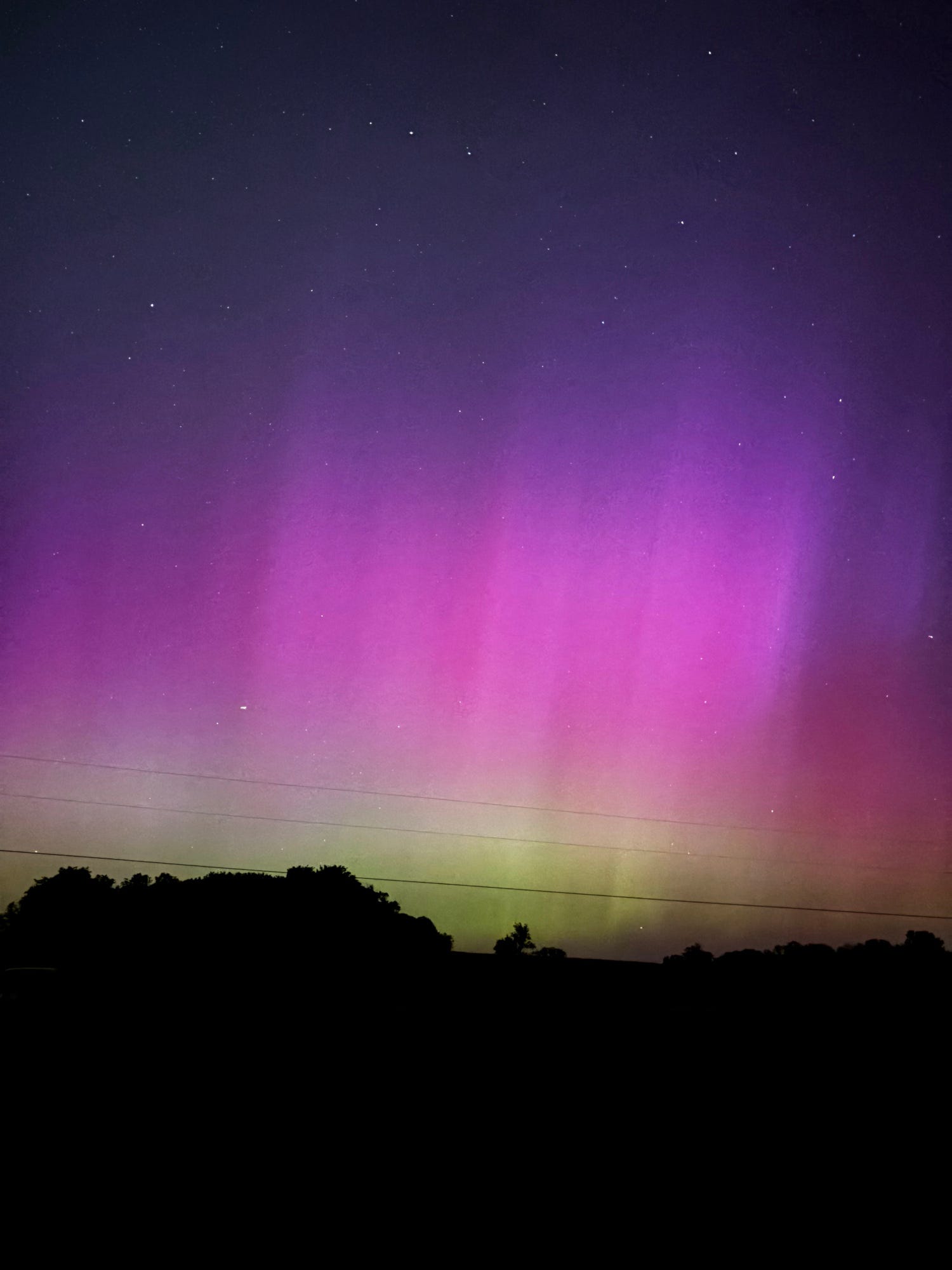 The highlight of the week came last night, when reports of a solar storm promised a rare sight for the Ozarks. Streaks of pale pink and green danced across the stars as my whole family stood outside, heads all turned skyward. The colors were faint, but they were there -- twirling and swirling in and out of view. I had heard that we might get to see the Aurora Borealis this week, but I didn't really believe it would happen. But it did, and it was one of the most beautiful, moving sights I've ever seen. Grace captured several photos with her iPhone camera, which picked up the colors even better than we could see with the naked eye.