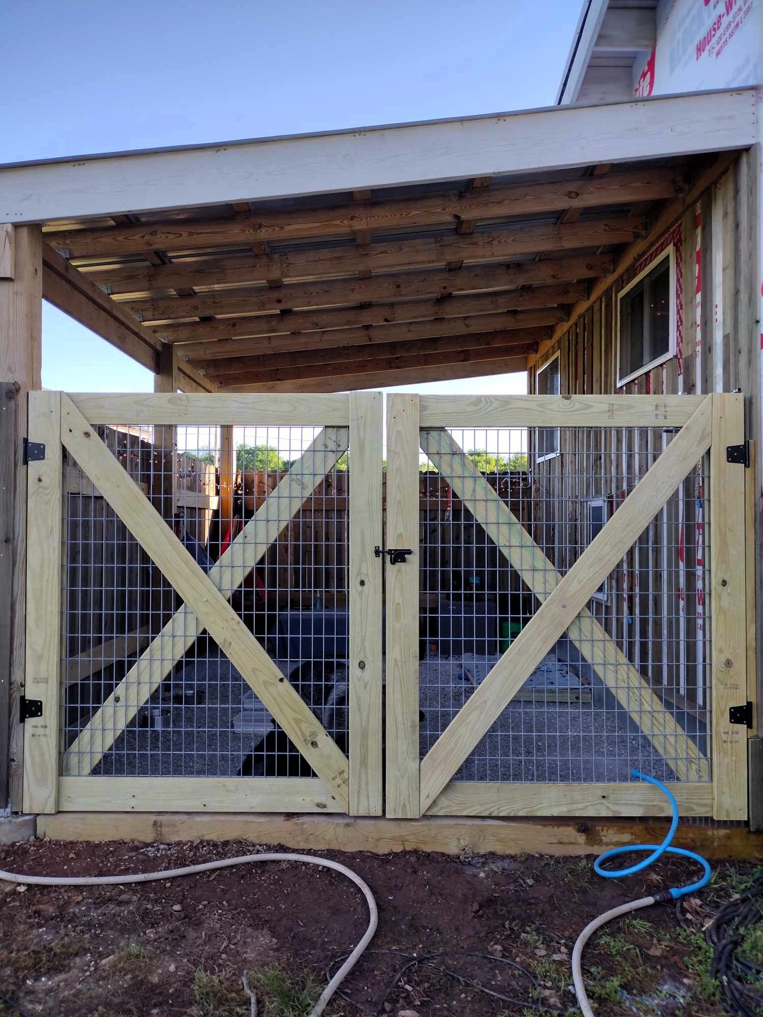 While Grace and I worked on the apiary, Bonnie-Jean helped our brother Jeremiah finish the dog kennel. They built a large double gate from cattle panels and decking. Eventually, we want the kennel to be able to open into a larger dog yard.