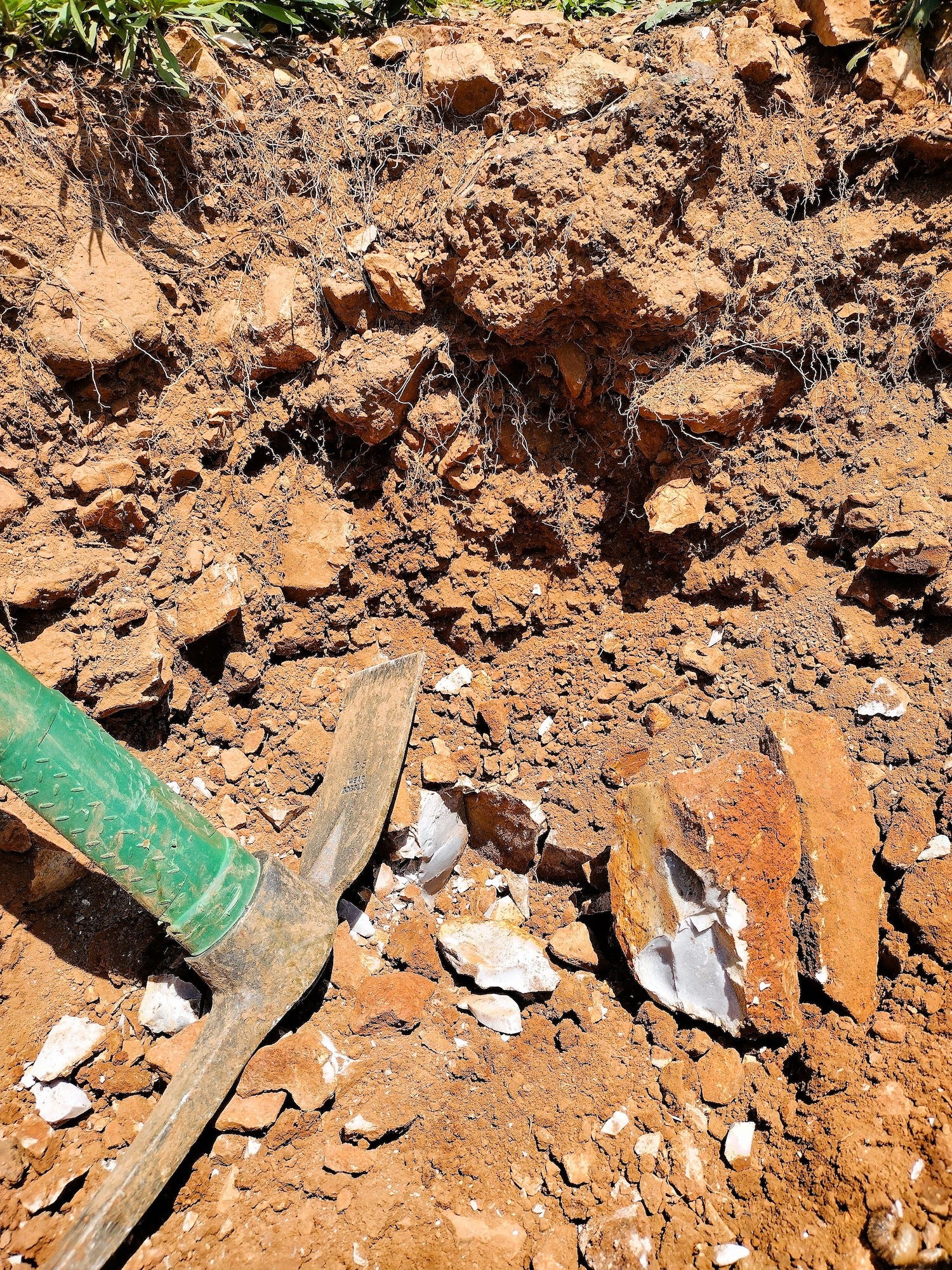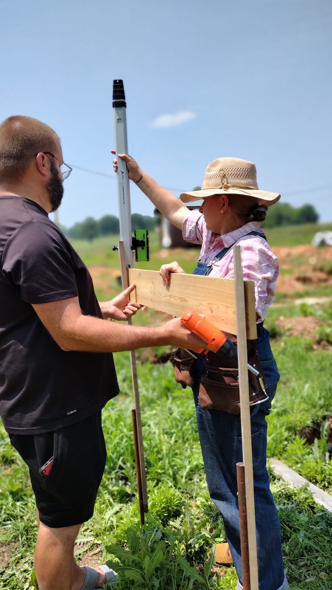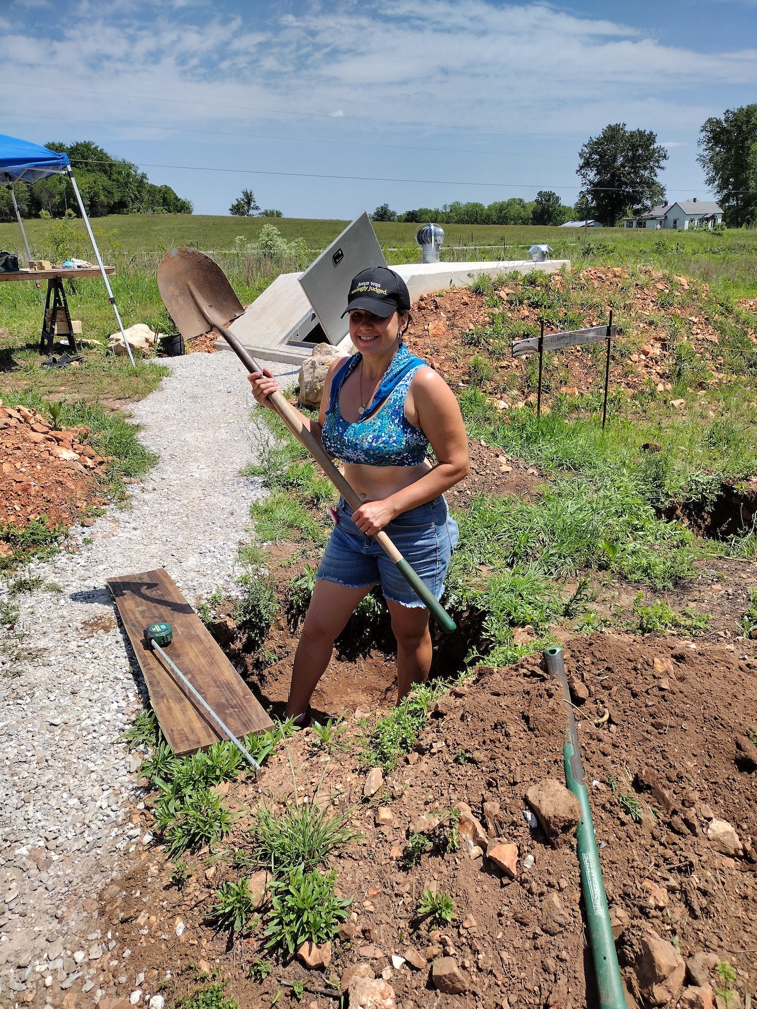 Once the batter boards were up, Grace and Levi started cleaning the footing holes back out (they had filled in a bit during the winter).