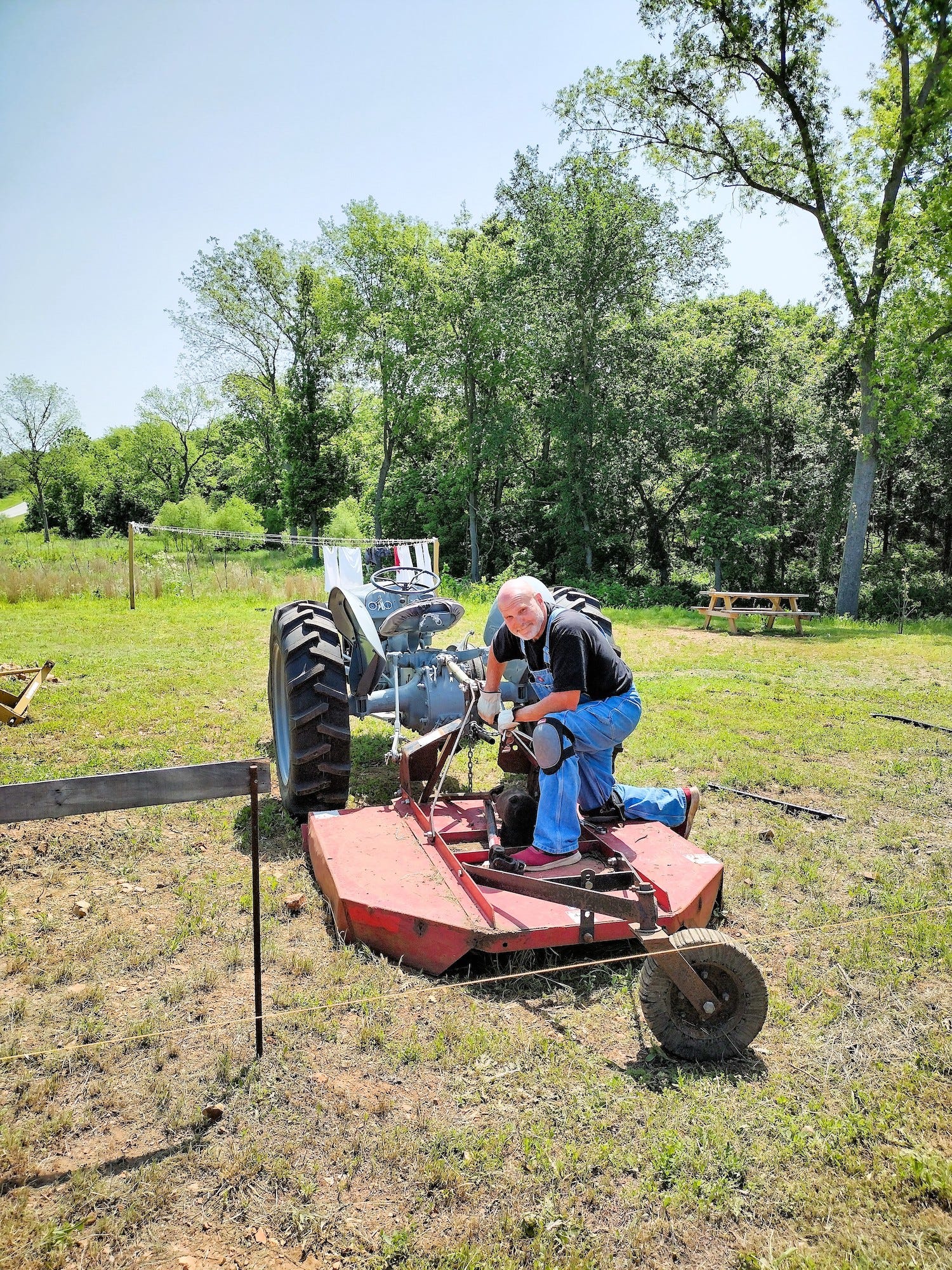 And just in time to level a spot for the pool, we got the tractor working! We had to go to town this week to pick up some parts. The plastic fuel line had melted, so we replaced it with some metal break line. Our dad and Levi worked on it today. Thankfully, it's finally running again! It has been sitting in the middle of our camp area since we moved out here, right next to our shower shed. Now our campsite feels much more roomy and the tractor can be used to make improvements around the homestead.
