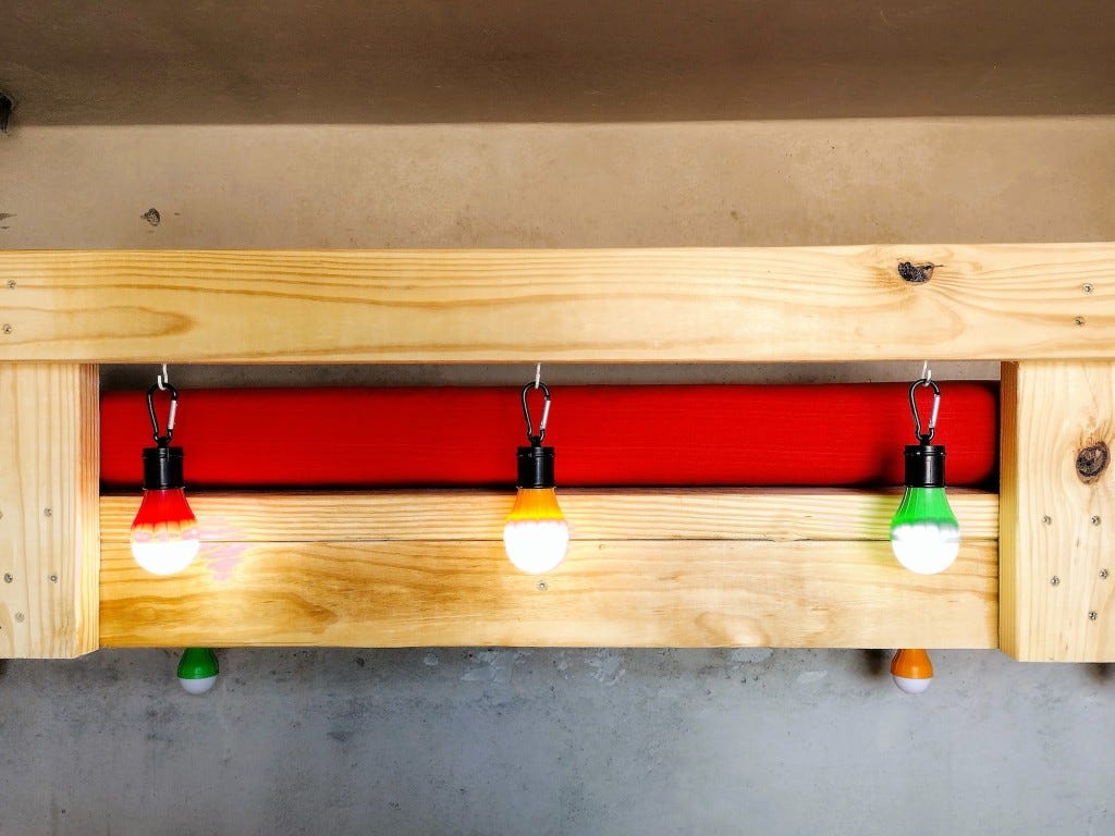 Aside from major projects, we finished some small tasks we had been working on. We completed our storm-shelter project once the new cushions arrived, and we hung up some old lights Levi and Erin had. It's downright cozy in there now.