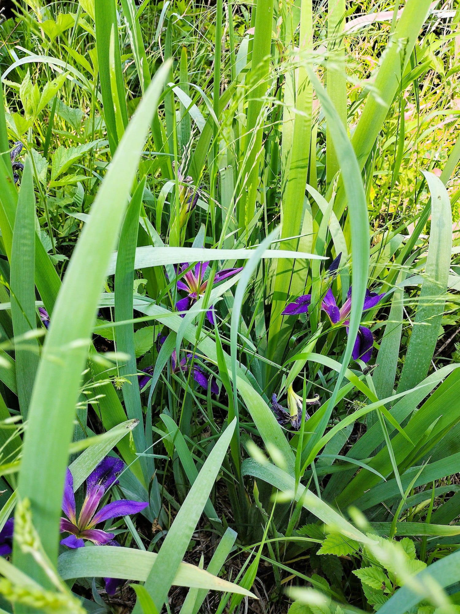 While we were out egg hunting, we stumbled onto a patch of wild irises (Southern Blue Flag, I believe) growing in and along a dry creek bed we have. They were gorgeous -- just take a look.