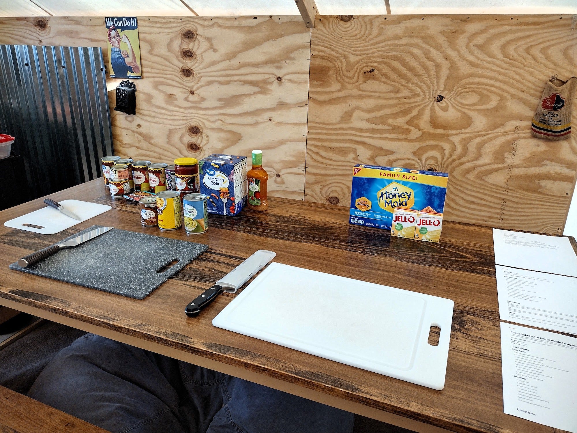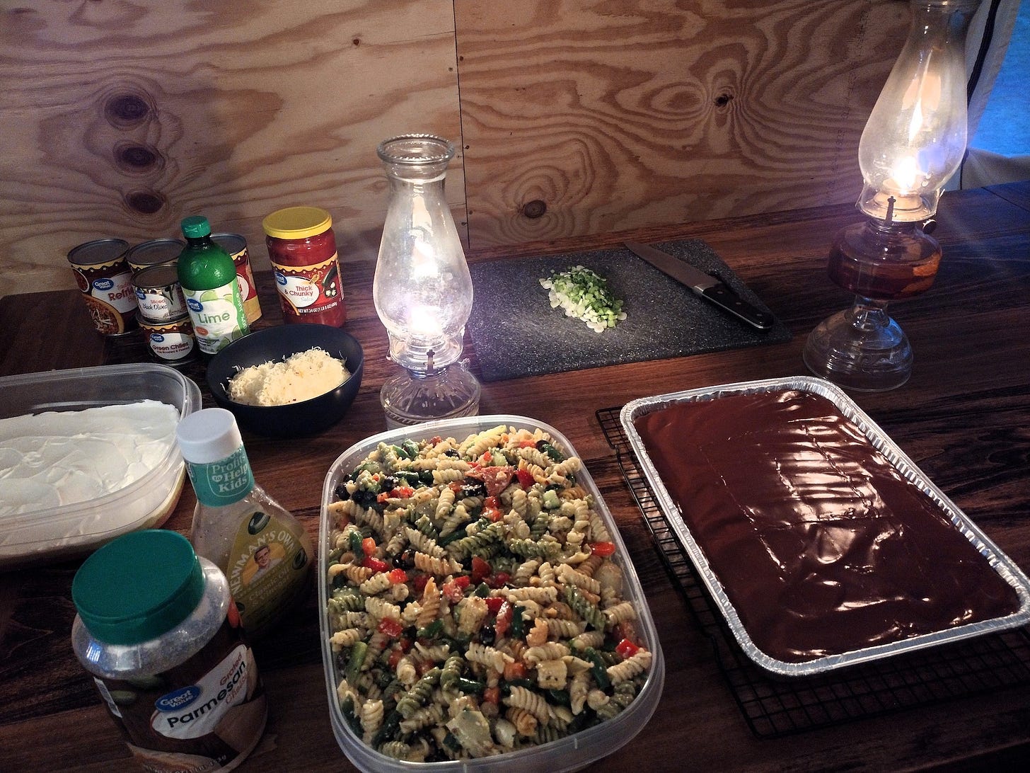 On Sunday, we went to church and attended our first, old-fashioned potluck since before the pandemic. Prepping for the potluck on Saturday night -- in a wall tent -- felt a bit adventurous, but all of us ladies came together and made quick work of it. And on Sunday, we so enjoyed the opportunity to fellowship and get to know brothers and sisters in Christ.