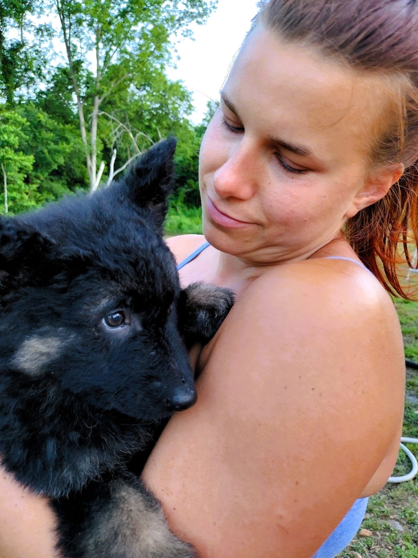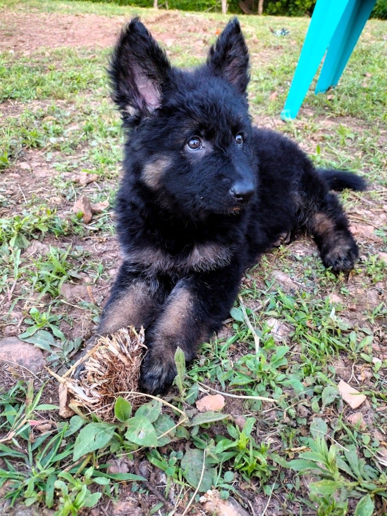 And it has been a very crazy couple of days. On Thursday, Jeremiah picked up his new puppy -- an 8-week-old German Shepherd he named Dagger. Dagger is a dark black and tan, with fluffy hair that makes him look more like a little bear than anything else. He has captured the whole family's hearts already, with his soulful looks and sweet demeanor.