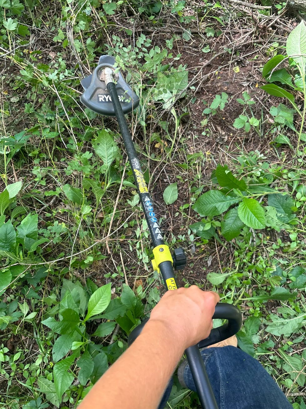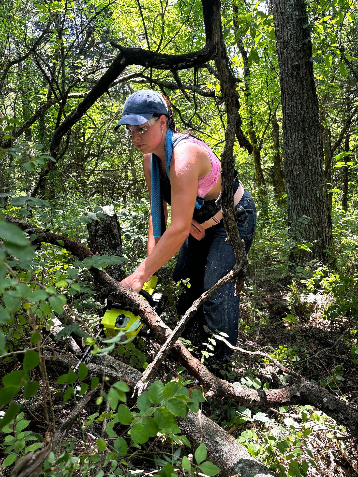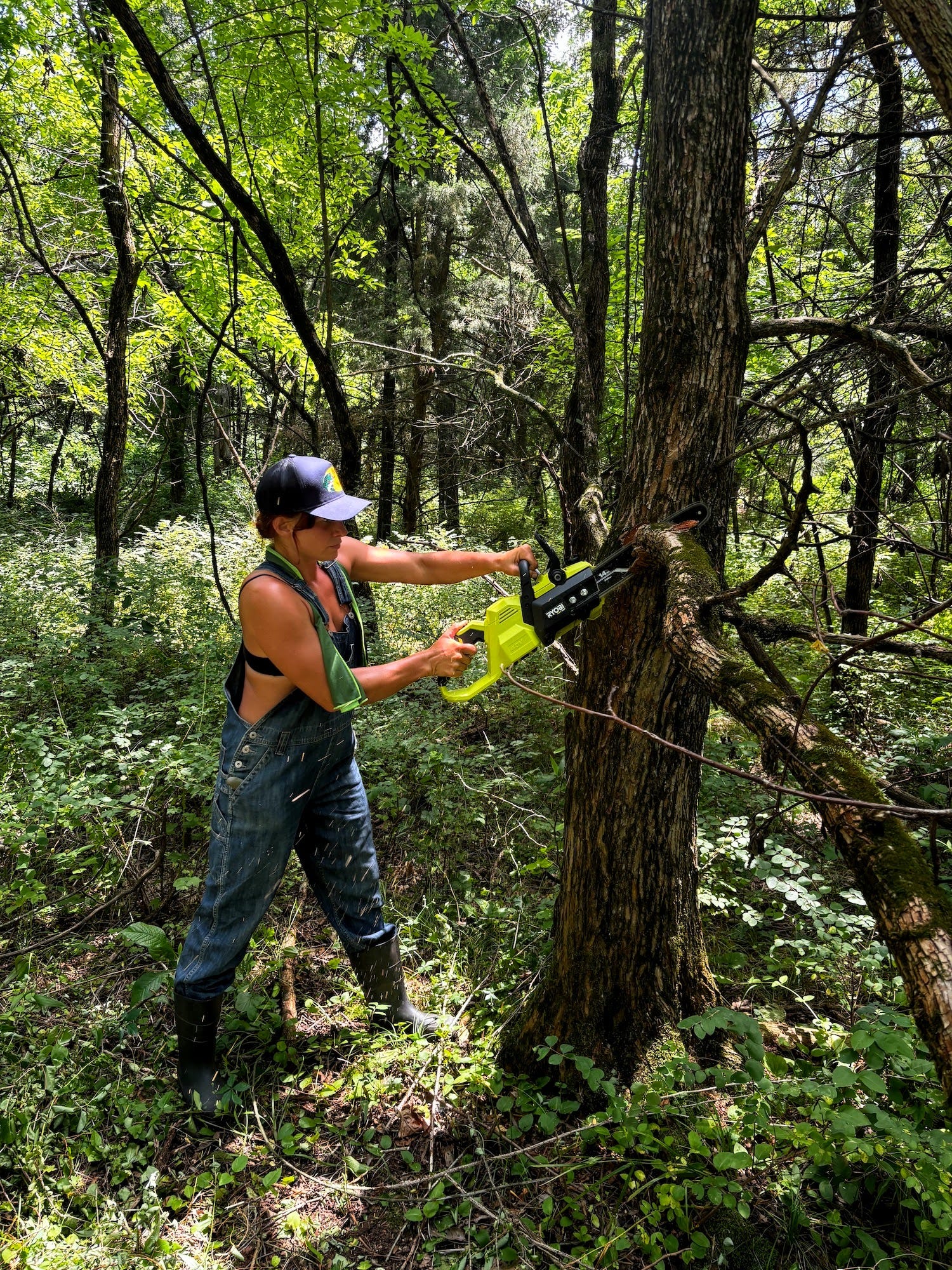We sisters spent several days clearing out our own campsite in the woods. As much as we all love to be together, there are definitely days when we could all use a little space. Especially for those of us with introverted tendencies, the desire to be alone can sometimes be almost overwhelming. After months of talking about it, we staked out a little space this week and got to work. Bonnie-Jean and Grace did most of the clearing, so they get most of the credit. They took the opportunity to use our new battery-powered Ryobi yard tools -- a weed trimmer and chainsaw. They loved both, and while there is still work to be done, it is hard to imagine they made so much progress in just three afternoons. We still plan to spend most of our time in our cozy little canvas tent. This space will give us the opportunity to spread out and have some kid-free girl time once in awhile -- which is very much needed.