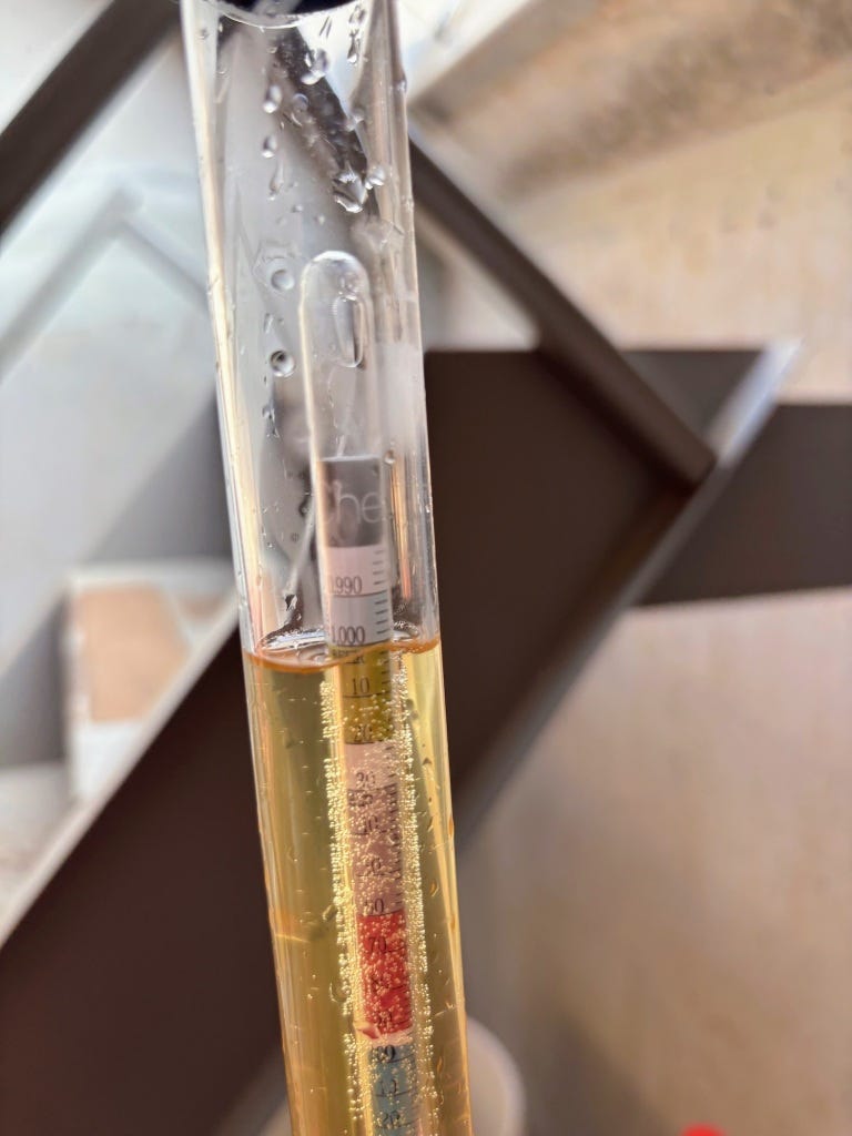 On Sunday, we planned to bottle our cider and beer. The cider had fermented for two weeks, and the beer for four. Both brews were supposed to be done fermenting much sooner, but their airlocks were so bubbly, we had been afraid to try it. If you bottle beer or cider to soon, the bottles can explode. After doing some research, we decided to use our hydrometer to make sure the gravity levels were steady a couple days prior to bottling. We purchased a wine thief to make it easier to take samples of the brews.