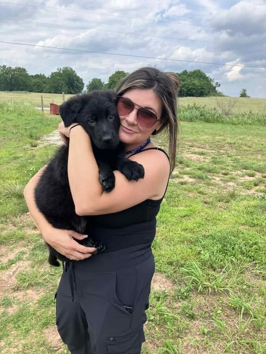 Early in the week, we said goodbye to two of Bonnie-Jean's puppies. A couple from Iowa drove down to pick up "Whopper" on Saturday. Then, on Monday, "Oreo" went to be with his new family.