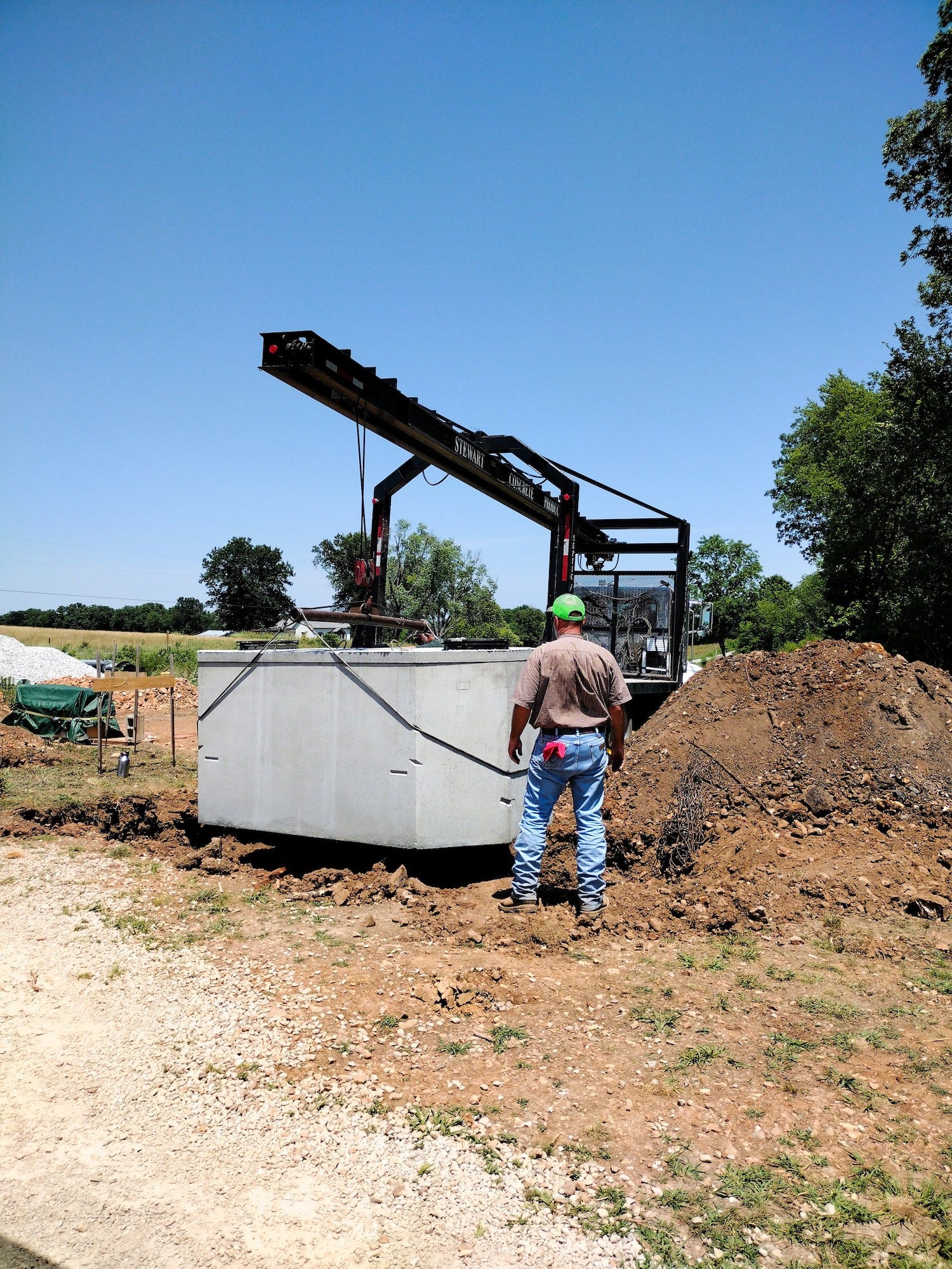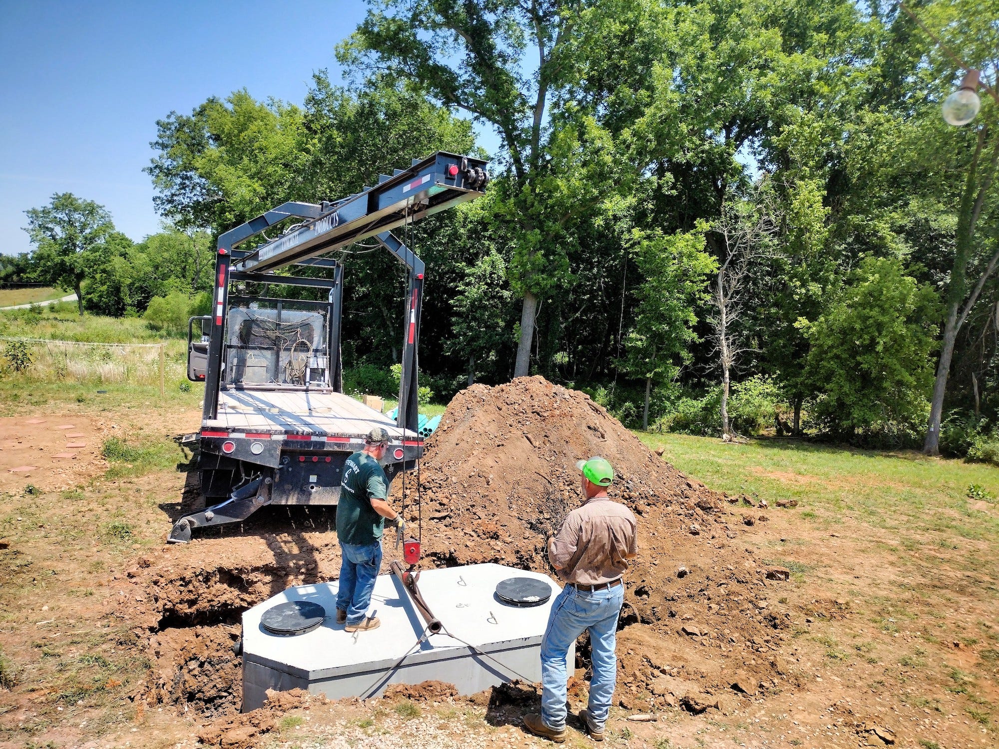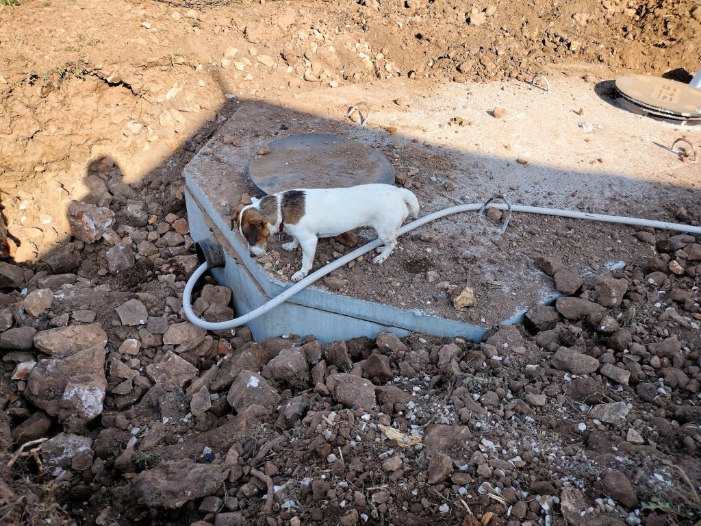 Dolly thought the septic tank was very suspicious. She barked at it for about 20 minutes when she first saw it, then she guarded it the rest of the evening. The hose filling it with water was especially mesmerizing.