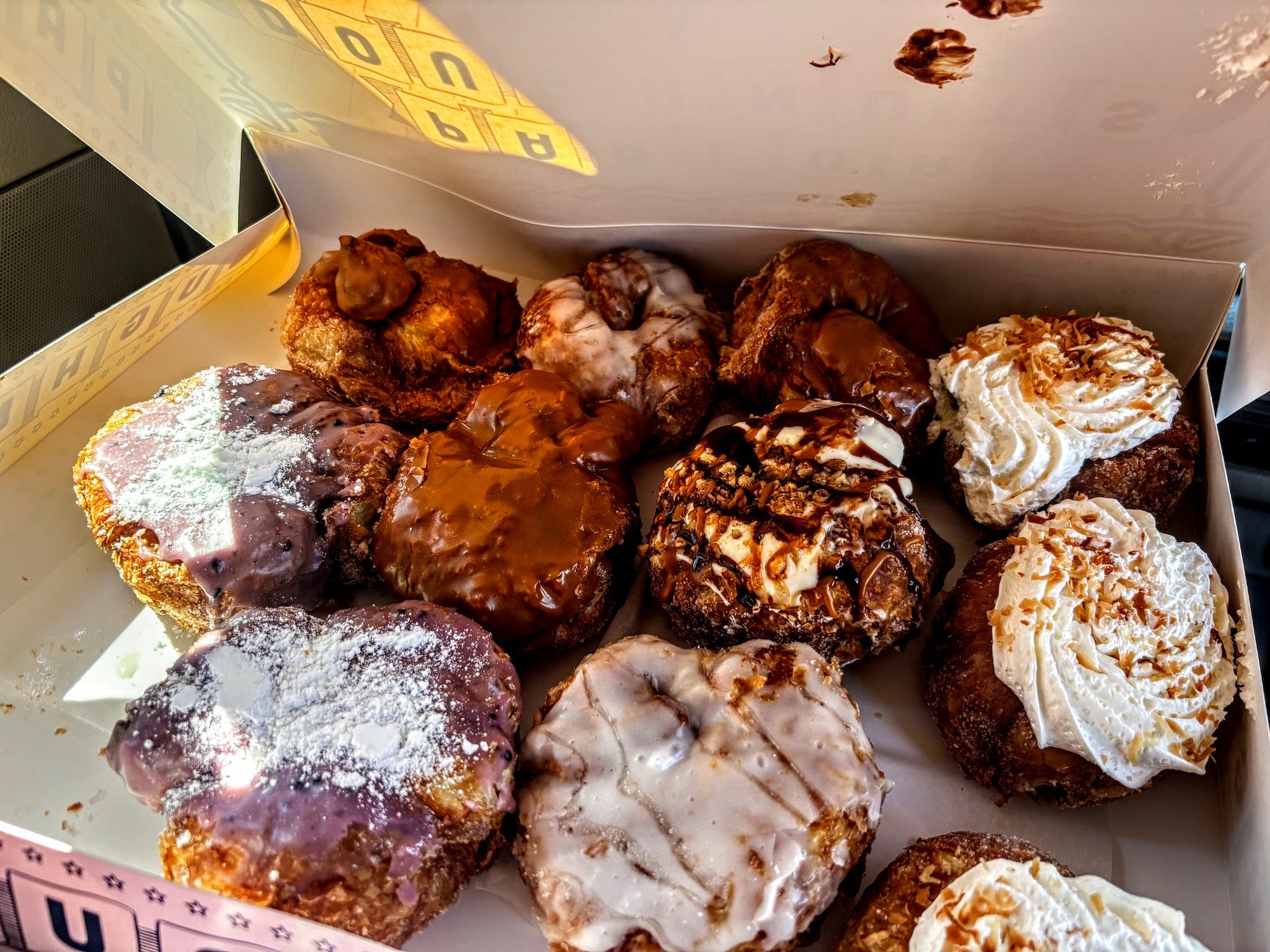 We started with breakfast at Parlor Doughnuts. We had planned to go to St. George's, which has been our favorite for years, but it was closed for the 4th of July weekend. Instead, we ran across the street to try the "famous layered doughnuts" at Parlor. And they were delicious. We washed them down with Starbucks iced lattes.