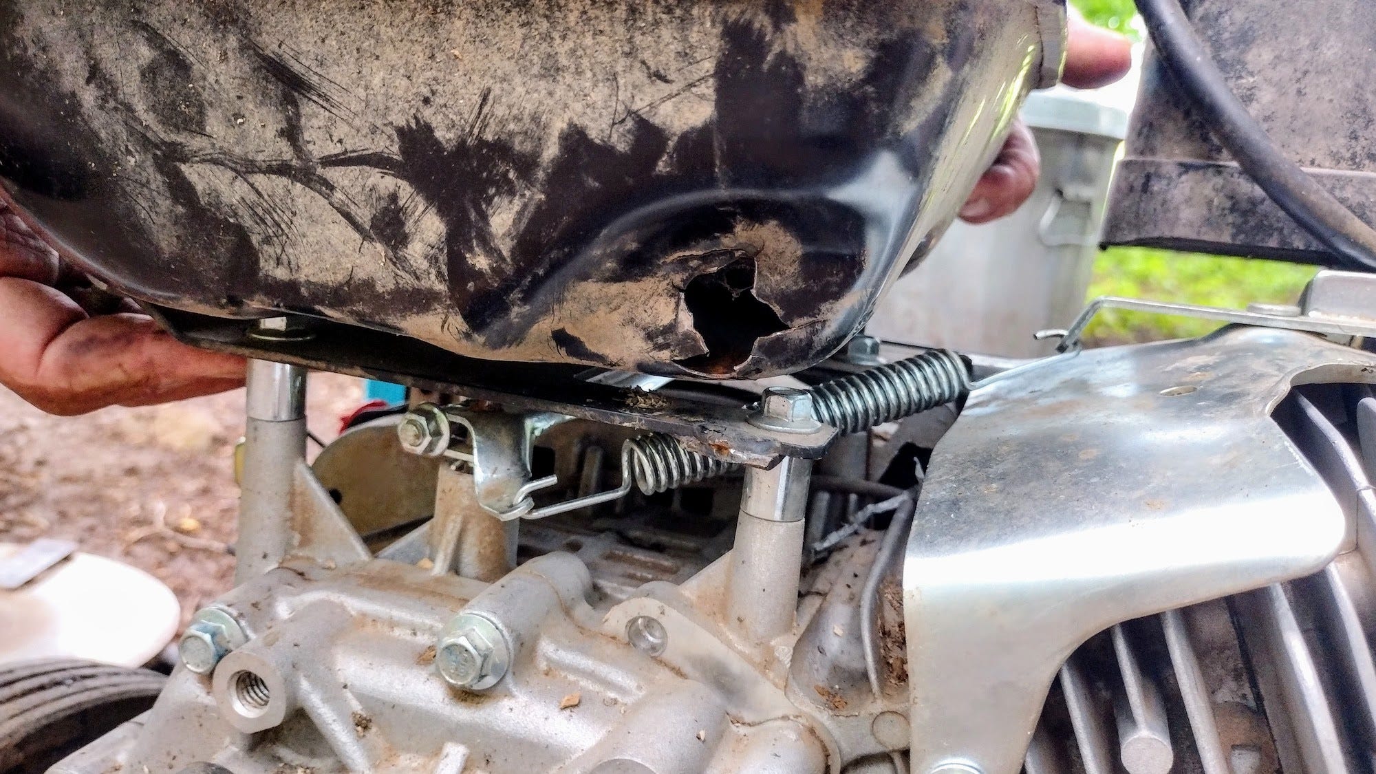 Our dad worked on our wood chipper. We've only had it for about two years. We love it for getting rid of brush and making chips for our garden, dog kennel, compost, etc. We recently ordered some replacement parts, only to realize that there was another issue that needed to be fixed. Sadly, after taking the chipper apart, our dad realized it might be beyond repair. It needs a new fuel tank, but they are out of stock on the company website -- and it appears our chipper was discontinued. We are dialoging with the company, hoping to find parts so that we can get it up and running again.