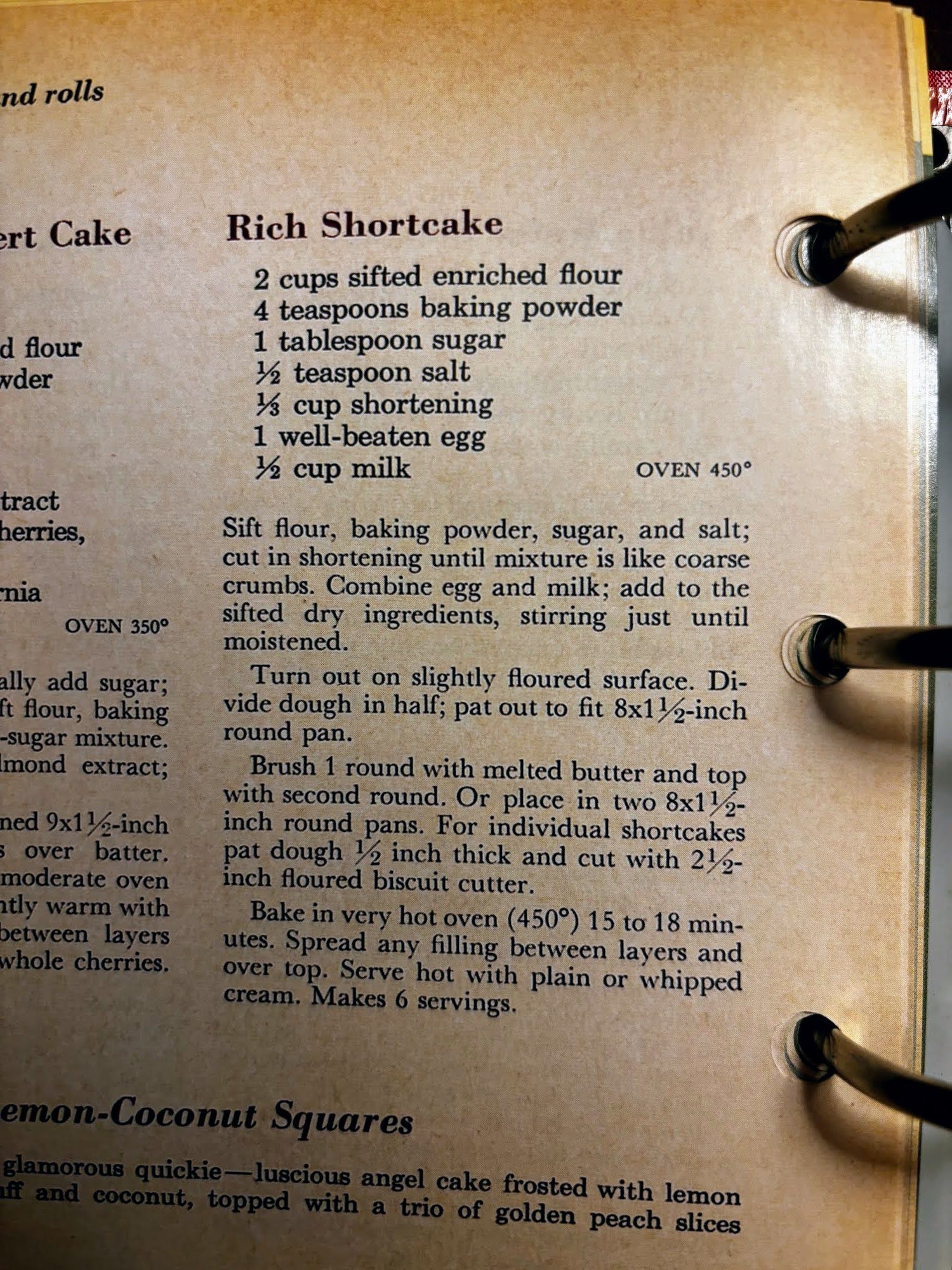 For years, our traditional Independence Day dessert has been strawberry cobbler. We tried one last year in the slow cooker, and it turned out a soggy mess. This year, we opted to make my Memaw's strawberry shortcake, which she always made out of the 1953 Better Homes and Gardens New Cook Book. She gave my mom a reproduction of the cookbook when I was a girl, and we have treasured it ever since. Grace and I mixed up the shortcake in the office, and she baked individual cakes in the air fryer. They turned out perfectly. When I bit into one, it took me back to the first time I remember my mom fixing them. I was probably 10, and I remember eating my strawberry shortcake on the front porch steps of our little '20s bungalow. The cake was rich and not too sweet, the strawberries sticky and delicious. I can already tell it is going to be a new favorite.