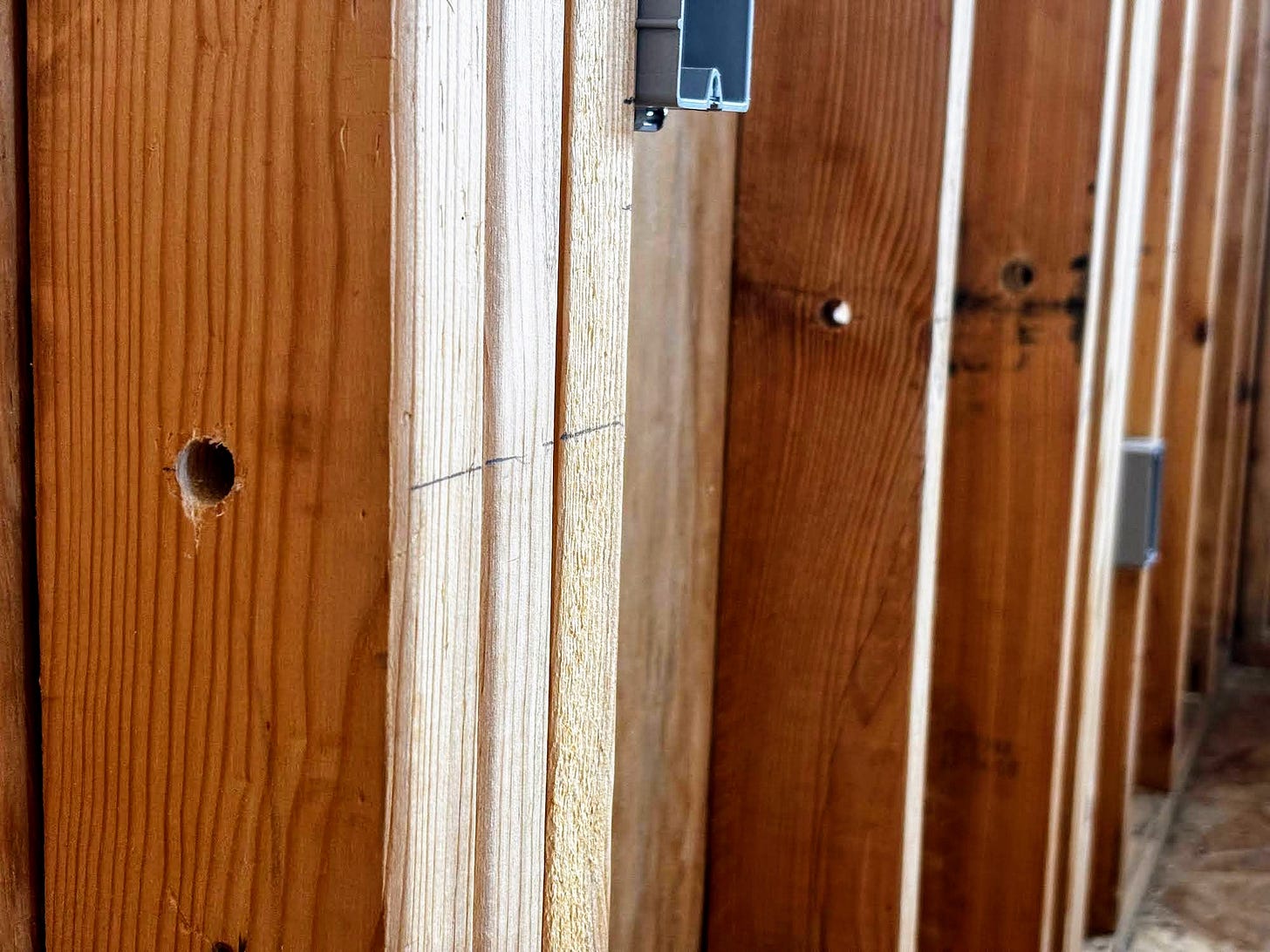 In the bunkhouse, Grace continued drilling holes to run our electric. She is loving our new Kobalt right-angle drill.