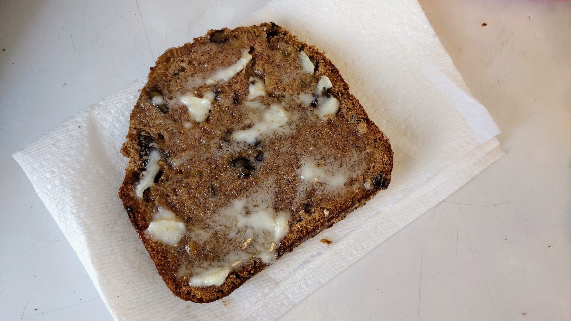 Jeremiah bought a bread maker a few weeks ago with the understanding that, if he funded it, his mom and sisters would use it. In the past, we made most of our bread from scratch -- but this hasn't been possible without an oven. So, over the last weeks, we've been experimenting. We've had bread machines before, so I'm somewhat used to how they work. Finding a good one has been an adventure that will get a post of it's own, but after some experimentation, we are enjoying the machine we chose. We've made oat bread, as well as zucchini bread for a weekend treat. We also have made a couple batches of sourdough, but we haven't quite perfected our recipe yet.
