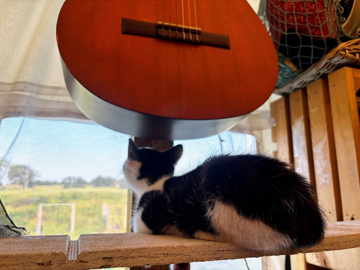 Strider, Grace's kitten, has continued to flourish, finding his way into all of our hearts. Grace added little platforms around the tent, giving him an easy way to escape if one of the dogs decides to get too rough. We are trying to train him to stay off the the table and counter tops, but so far it is only a work in progress.