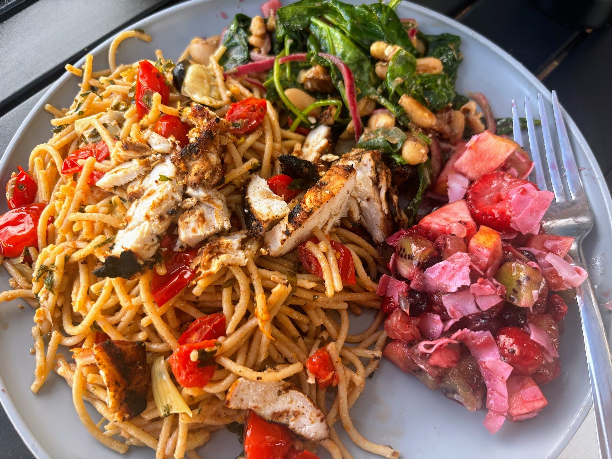 In an effort to keep our diet well-rounded, we've been incorporating a few Mediterranean recipes over the last weeks. We typically eat low-carb and nearly gluten free, but we've enjoyed a couple meals of whole-wheat pasta, as well of plenty of seasoned vegetables. It's been a delicious change.