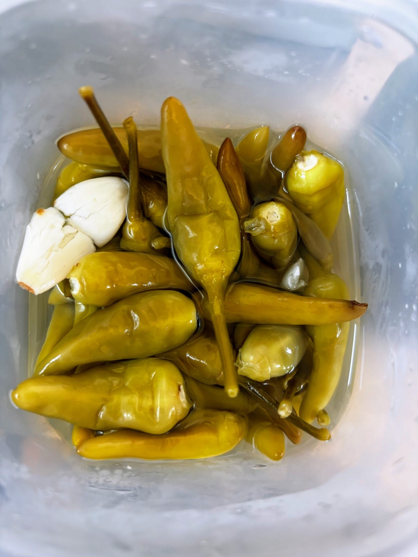 This week, Bonnie-Jean worked on some light preservation, as we really aren't set up for canning. She made several batches of refrigerator pickled peppers and green tomato relish. We've been eating peppers with everything -- from pasta dishes to snacks of cucumbers and cheese. We have yet to get any tomatoes, but when those start, I fear we'll eat nothing else for a month.